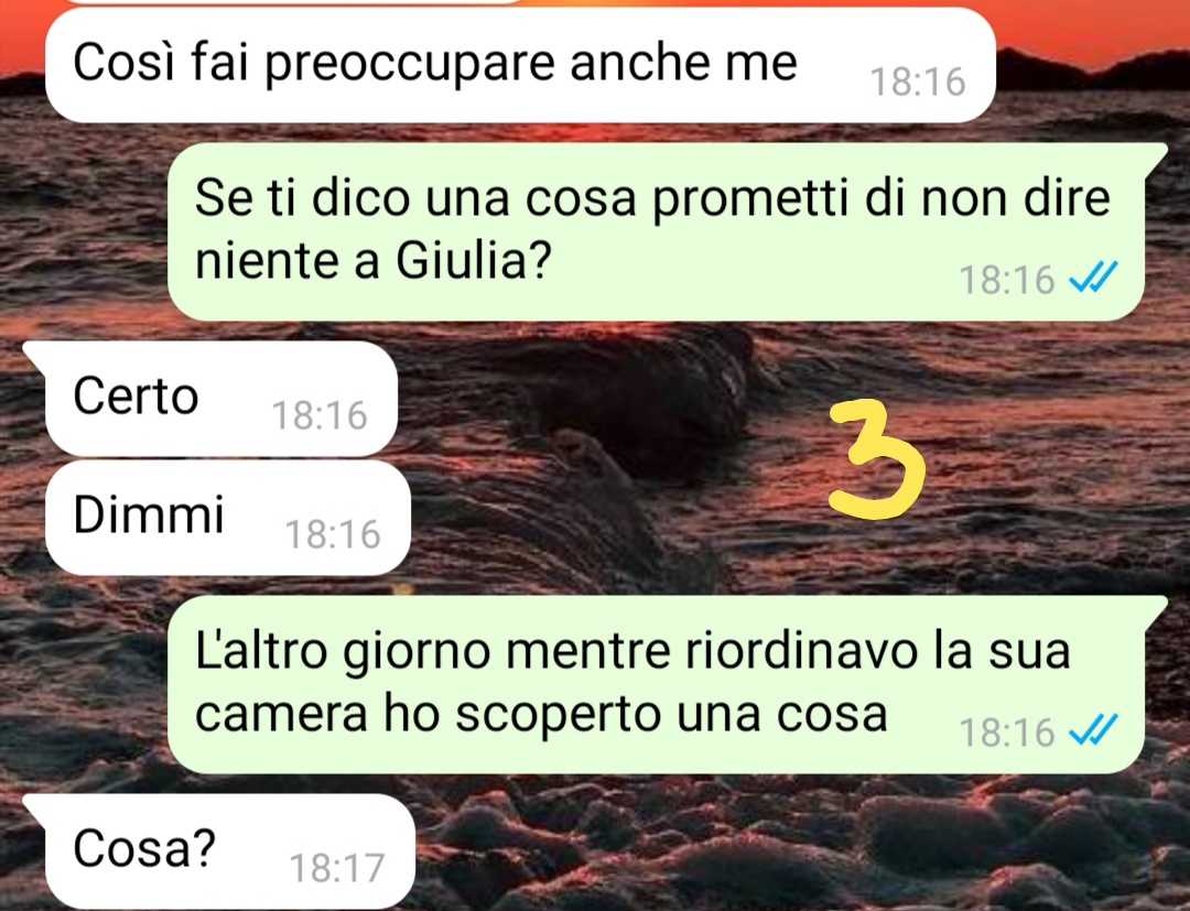 Mi chiamo Anna e sono la mamma di Giulia, una ragazza di 16 anni. Devo dire che non mi ha mai dato particolari problemi, ma con l’entrata nell’adolescenza qualche incomprensione è iniziata. Ultimamente la vedevo strana, diversa. Sapete con i figli, specie di questa generazione non è facile parlare, sono sempre immersi in qualche social, in qualche altra realtà… anche se sono abbastanza giovane mi sembra che tra le nostre generazioni passino delle ere vere e proprie. Comunque l’altro giorno decido di sistemare quel caos che si trova in camera sua e noto che l’anta del suo armadio non si chiude. Credo ci sia qualcosa che la blocca così apro per sistemare e trovo una cosa che mi lascia senza parole. Mi siedo a terra, la guardo e la riguardo e non riesco a darmi una spiegazione… Non so come reagire. La sera stessa non dico nulla, poi lei mi dice che la sera dopo la sua amica Alessia l’ha invitata a dormire da lei. Dico di sì ma alla luce di quello che ho scoperto sono preoccupata. Così scrivo alla mamma di Alessia per assicurarmi che sia davvero lì… E non immaginerete mai cosa è successo dopo…