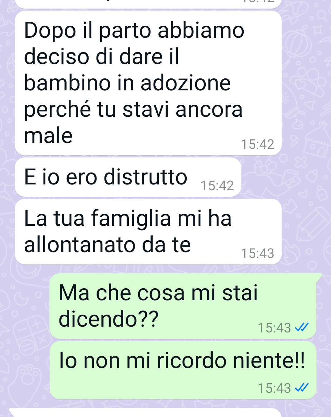 La nostra fan si trova in una situazione surreale proprio alla vigilia delle sue nozze. Il tempismo del suo ex fidanzato Luca è stato davvero incredibile: proprio il giorno prima del matrimonio, l’uomo le ha scritto per comunicarle di avere insieme un figlio. La follower però è categorica nel negare questa possibilità, sottolineando come sia impossibile che lei abbia dei bambini. La situazione appare paradossale e contro ogni logica, lasciando l’amica completamente spiazzata da questa rivelazione inaspettata che arriva nel momento più delicato della sua nuova vita.