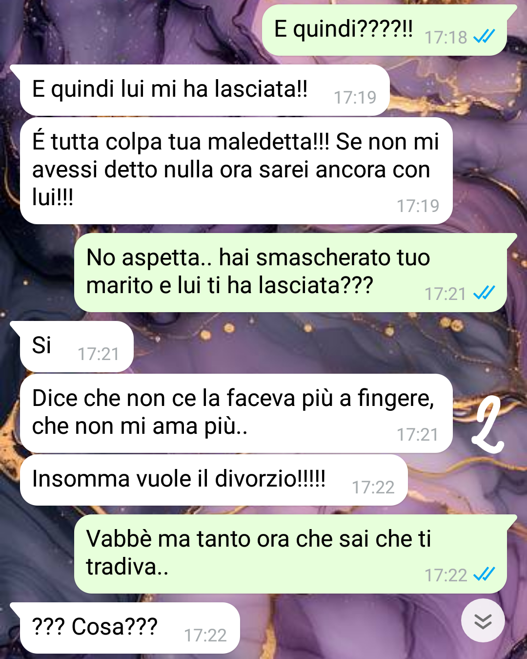Mi chiamo Elsa e a quanto pare sono una vipera! Eh già! Ma lasciate che vi racconti cosa è successo e perché mi si accusa di essere un serpente strisciante… Allora dovete sapere che io ho un’amica di vecchia data che si chiama Antonella. Antonella è sposata da molti anni con Luciano, che io conoscono perché, ovviamente, essendo noi amiche mi è capitato di incontrarlo. E fin qui, tutto bene. Ora, alcune settimane fa, mentre ero fuori a cena con il mio compagno, incontriamo per caso Luciano. Insieme a lui c’era una donna più o meno della sua età. Ok, so cosa pensate: non è che se uno va a cena con un’amica allora vuol dire chissà che… ma secondo me se uno mentre è a cena con un’amica le mette mezzo metro di lingua in bocca qualcosa vorrà dire… Insomma io sta cosa me la sono tenuta dentro una settimana poi non ce l’ho fatta più e ho deciso di vuotare il sacco e dire tutto ad Antonella!! D’altronde come potevo fare finta di niente e nasconderle una cosa così!?!? Mi sentivo malissimo per lei, ma anche con me stessa perché era un segreto davvero troppo grande da mantenere. Quando le ho raccontato tutto lei mi ha ascoltata in silenzio e poi ha detto che avrebbe affrontato il marito… e non avete davvero idea di come è andata a finire sta storia!!!