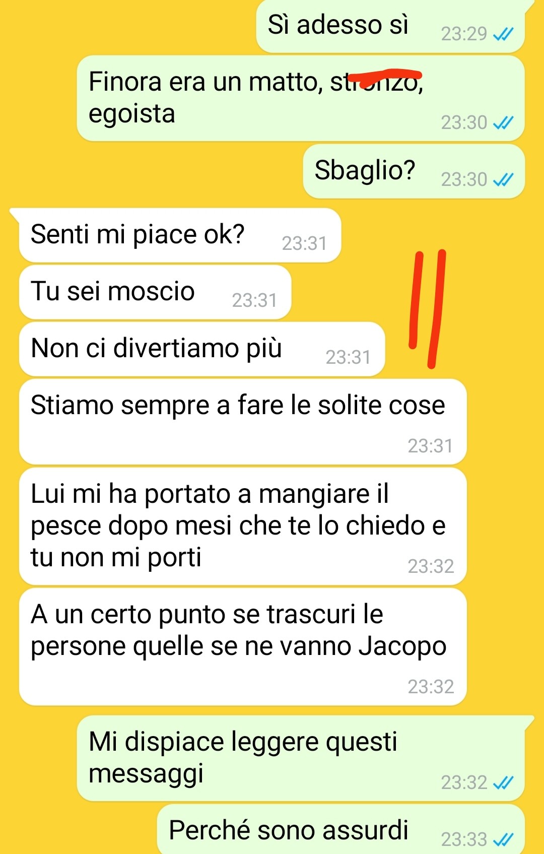 Nel corso degli anni, il nostro amico spiega che Silvia sviluppava periodicamente delle fissazioni e che lui cercava ogni volta di fare del suo meglio per soddisfare le sue richieste. Tuttavia, dopo tre anni vissuti in questo modo, racconta di essere arrivato a un punto di forte stanchezza. Il nostro follower descrive un progressivo senso di solitudine, un calo dell’autostima e la mancanza di qualcuno con cui confrontarsi o parlare apertamente.