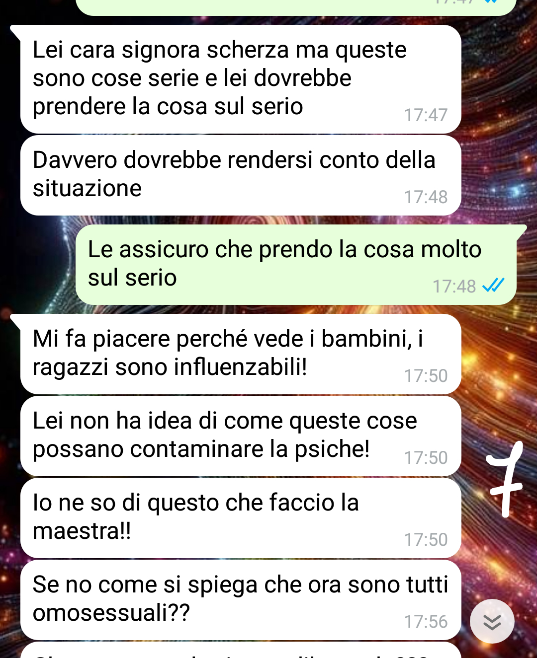 La nostra fan Miranda si presenta come madre di due figli: Renato di 23 anni che vive da solo ed Emma di 17 anni che frequenta la scuola superiore. Nonostante sia soddisfatta della sua esperienza genitoriale, l’amica confessa che uno degli aspetti più difficili dell’essere madre è stato dover interagire con gli altri genitori. La follower specifica di non voler generalizzare, ma ammette che alcuni genitori risultano davvero insostenibili nel loro comportamento.