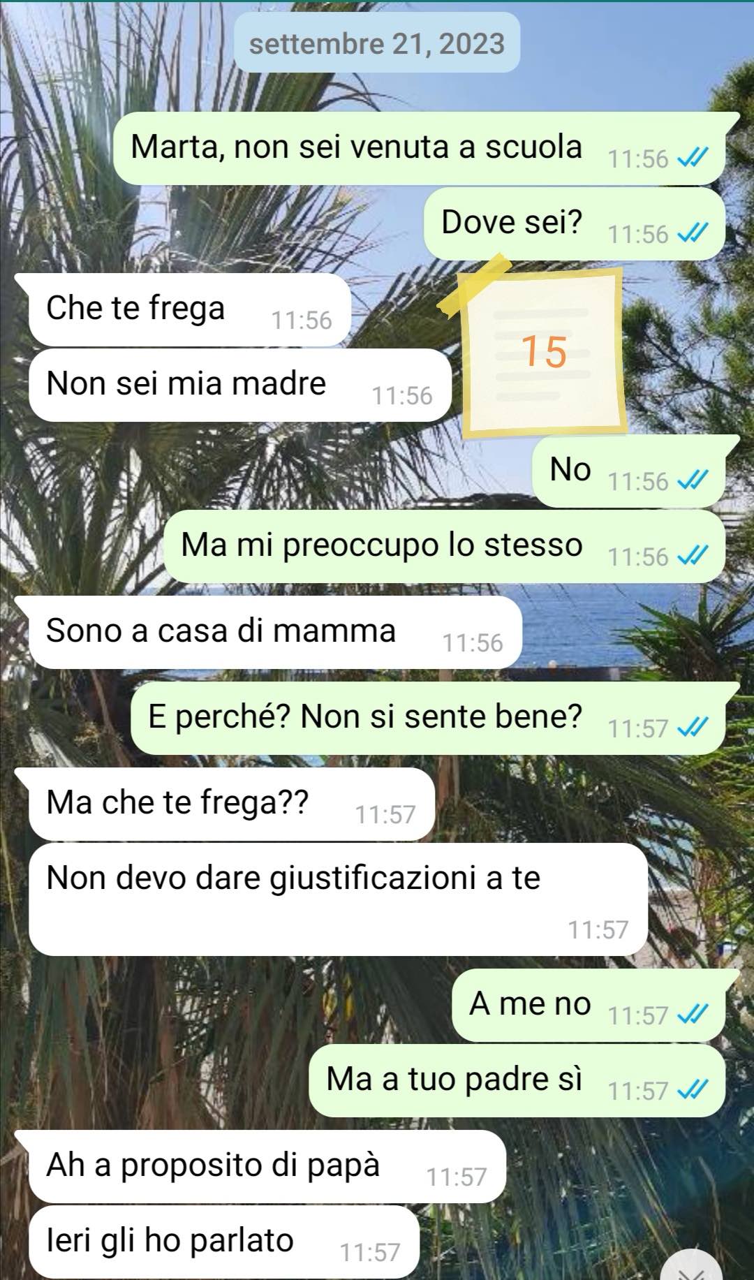 Nonostante i suoi sforzi per trovare un equilibrio e cercare di andare d’accordo, Marta sembra intenzionata a mettere Elisabetta in cattiva luce in ogni occasione. La nostra fan racconta che questa tensione ha raggiunto il culmine con l’ultimo episodio, una chat che rappresenta solo uno dei tanti scontri di quella che definisce una vera e propria “saga personale” tra loro. Elisabetta, ormai stanca di questa situazione, conclude dicendo di non sapere più come affrontare questa difficile dinamica.
