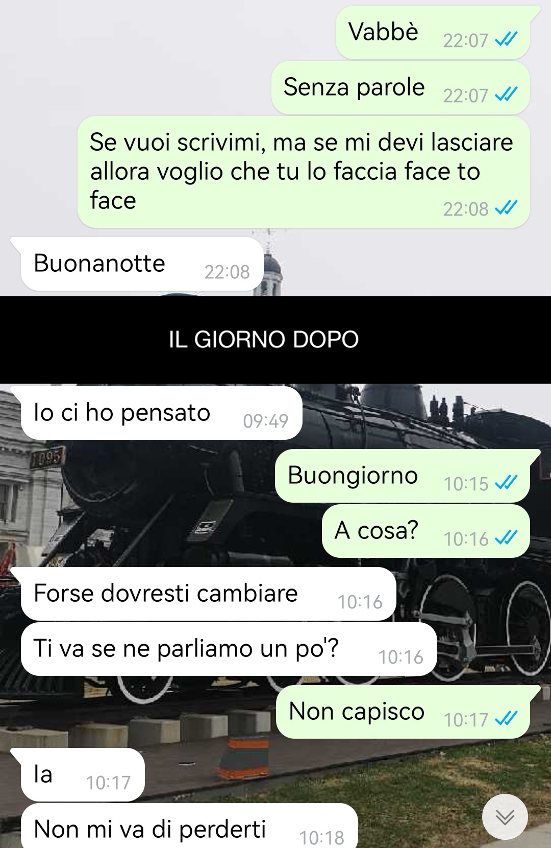 La discussione ha portato Annalisa a suggerire che Iacopo potrebbe aver bisogno di assistenza. Iacopo si trova ora di fronte a un dilemma: deve decidere se seguire il consiglio di Annalisa per evitare di perderla, anche se personalmente non ritiene di avere bisogno di aiuto. Si sente diviso tra la volontà di preservare il rapporto e l’incertezza sulle sue azioni future.