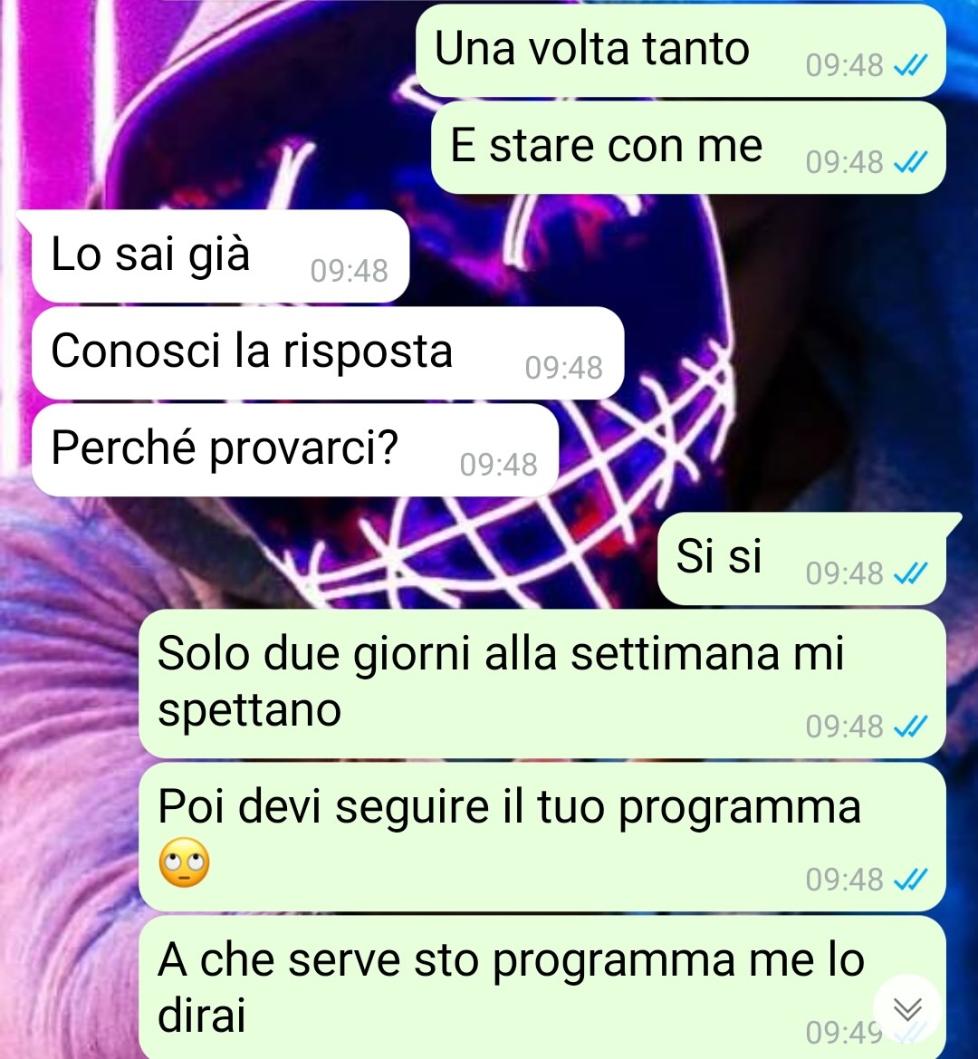 Sono Federico e ho avuto a che fare con Barbara, una persona con la quale mi sono visto per alcuni mesi e alla quale ero molto affezionato, ma che aveva una mentalità assurda e folle e sinceramente ho già abbastanza problemi nella mia vita pure per essere attaccato da una persona del genere. Ci siamo conosciuti su internet, come ormai succede praticamente a tutti penso, e ci siamo piaciuti. Ci siamo visti e ci siamo più o meno messi insieme. Non è che ne avessimo mai effettivamente parlato e non ho mai affrontato l’argomento, ma considerando com’è finita forse è stato meglio così. Che poi, divagando un attimo, penso a volte quando leggo alcune storie di come sia possibile che all’inizio si è tutti amorino di qui e di lì e alla fine le persone si odino. Ora che mi ci sono ritrovato in prima persona ho capito come sia possibile. Quando succede qualcosa di estremo, fai uscire tutta la rabbia e il risentimento. E in questo caso ce n’era tanto, partendo dal fatto che lei è a dieta e io, essendo un pasticcere, volevo farla mangiare un pochettino. Ed è finita male.