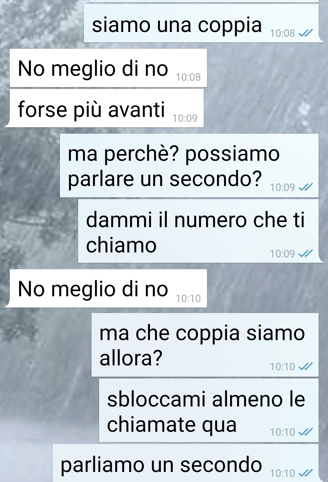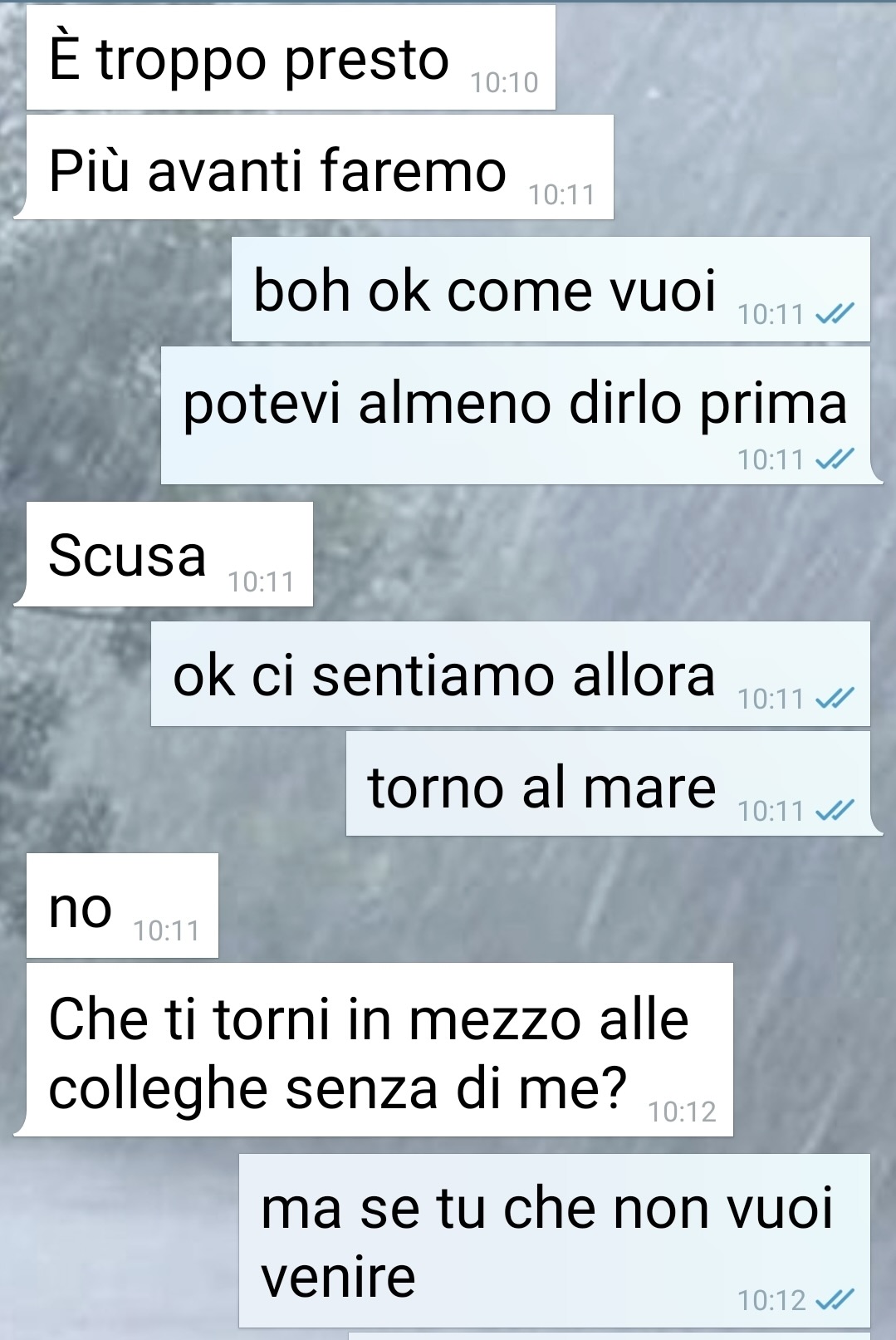 Il racconto prosegue con una riflessione amara: la ragazza, a suo dire, riesce a muoversi tra pretese e freddezza, lasciandolo in una posizione ambigua e disorientante. Dice di sentirsi coinvolto in qualcosa che non riesce a decifrare, dove il concetto di “coppia” sembra avere un significato completamente diverso da quello che lui immagina.