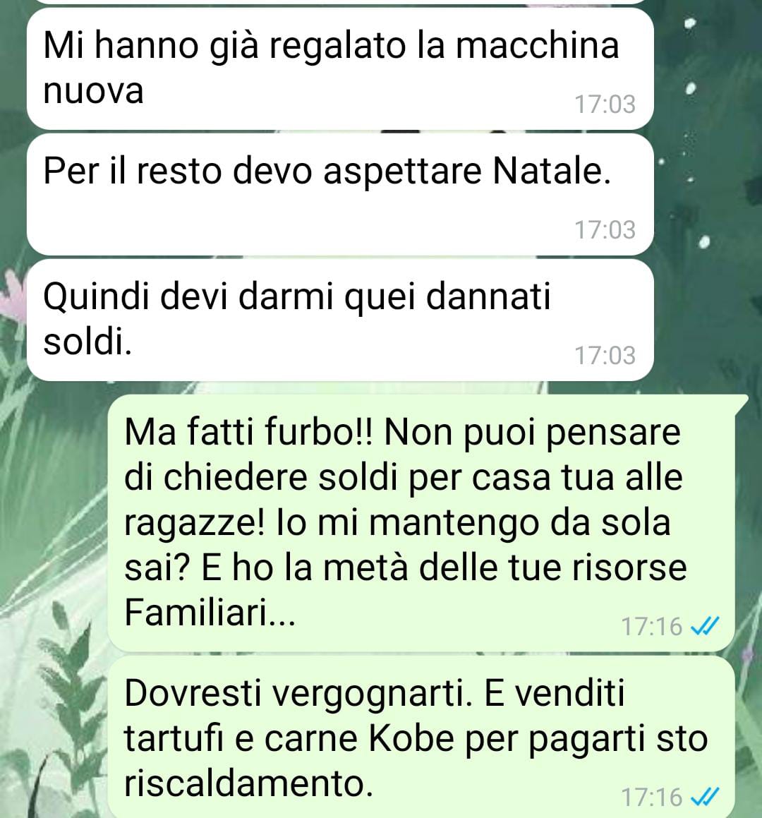 La nostra fan aggiunge un dettaglio che, a suo avviso, aiuta a comprendere meglio il contesto: il ragazzo proviene da una famiglia molto benestante, il classico figlio di imprenditori con pochi pensieri e una vita piuttosto agiata. Lei precisa che anche la sua famiglia non ha problemi economici, ma sottolinea comunque una differenza di mentalità che potrebbe aver influito sulla dinamica tra loro.