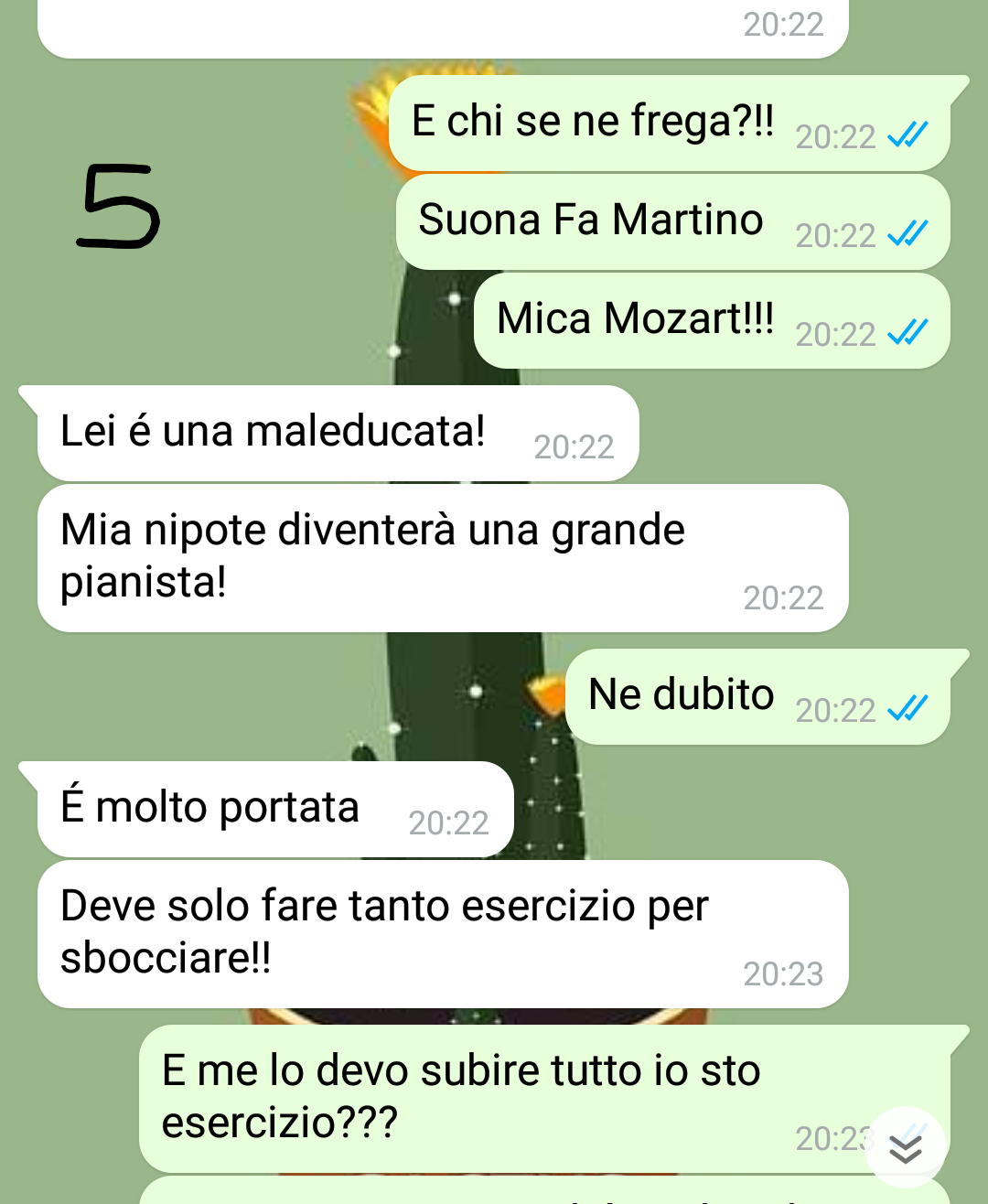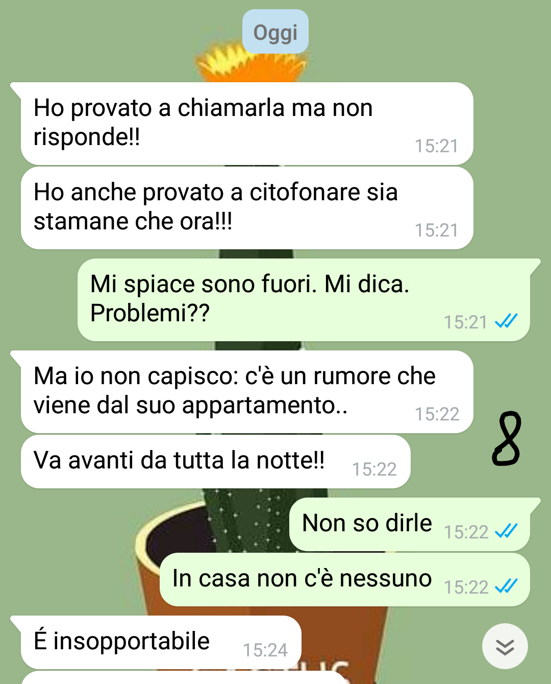 La nostra follower Nicoletta si è trasferita da poco nella sua prima casa da sola, un appartamento che descrive come perfetto e situato nel quartiere ideale. L’entusiasmo iniziale per questa nuova sistemazione abitativa si è tuttavia trasformato rapidamente in frustrazione a causa di un problema inaspettato: la vicina del piano superiore. Si tratta di una donna anziana in pensione che trascorre tutto il tempo in casa e crea continuamente disturbi, ma il problema principale è rappresentato dal suo pianoforte. Inizialmente l’anziana suonava lo strumento a qualsiasi ora del giorno e della notte, creando un disagio notevole non solo alla nostra fan ma anche ad altri condomini.
