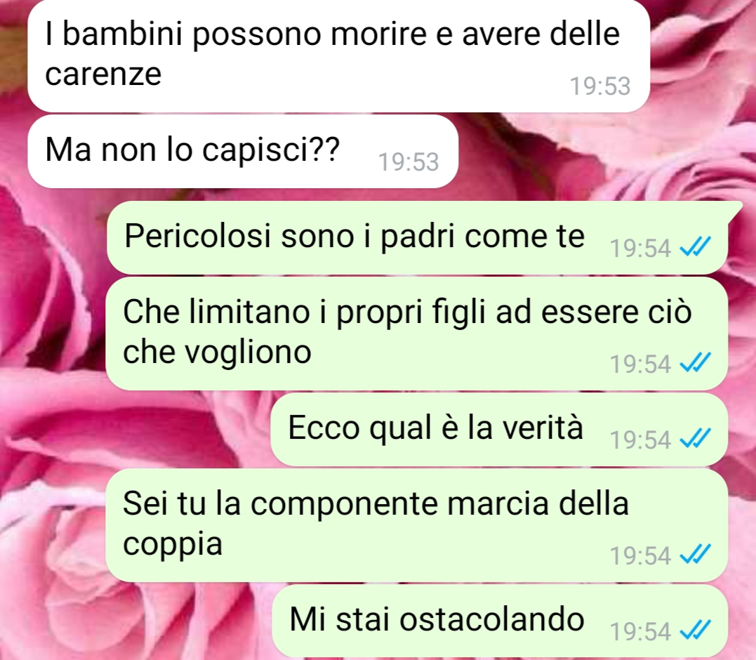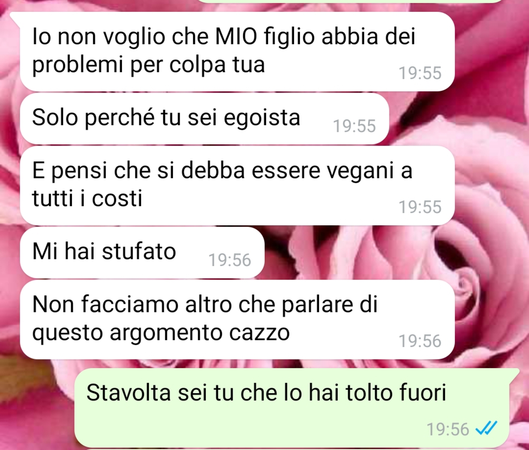 Nel proseguo del suo racconto, Chiara esprime ulteriore disappunto verso l’atteggiamento del marito Stefano riguardo alla scelta di un regime alimentare vegano per il loro figlio Luca. La situazione ha portato Chiara a prendere una decisione drastica che lei ritiene necessaria per il bene della famiglia. Lei critica l’idea di imporre scelte ai figli, vedendo in questo l’atteggiamento di Stefano, che non accetta la decisione vegana.