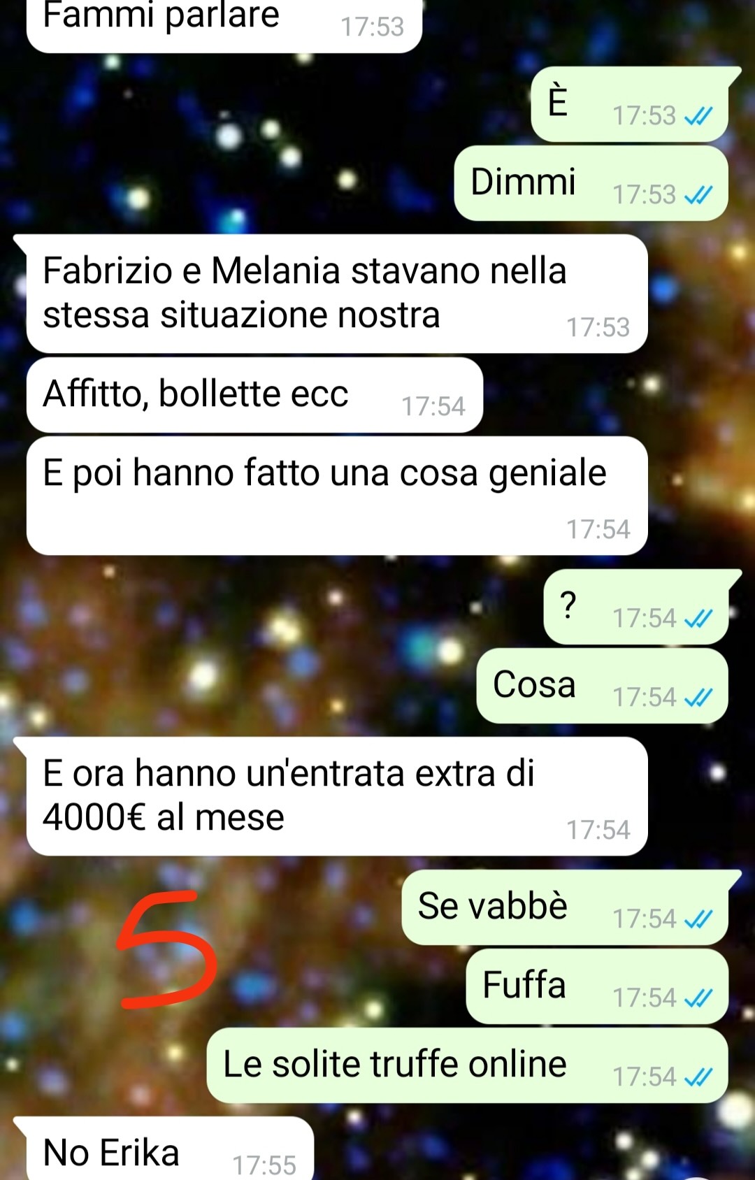 Erika parla anche della sua situazione lavorativa. Spiega che le piacerebbe cambiare lavoro, ma che al momento ha un contratto considerato abbastanza sicuro. Questo aspetto la mette in difficoltà, perché teme che, lasciando il posto attuale, possa restare disoccupata. La nostra amica sottolinea come un contratto a tempo indeterminato non sia facile da trovare e come questa incertezza la spinga a rimandare qualsiasi decisione.