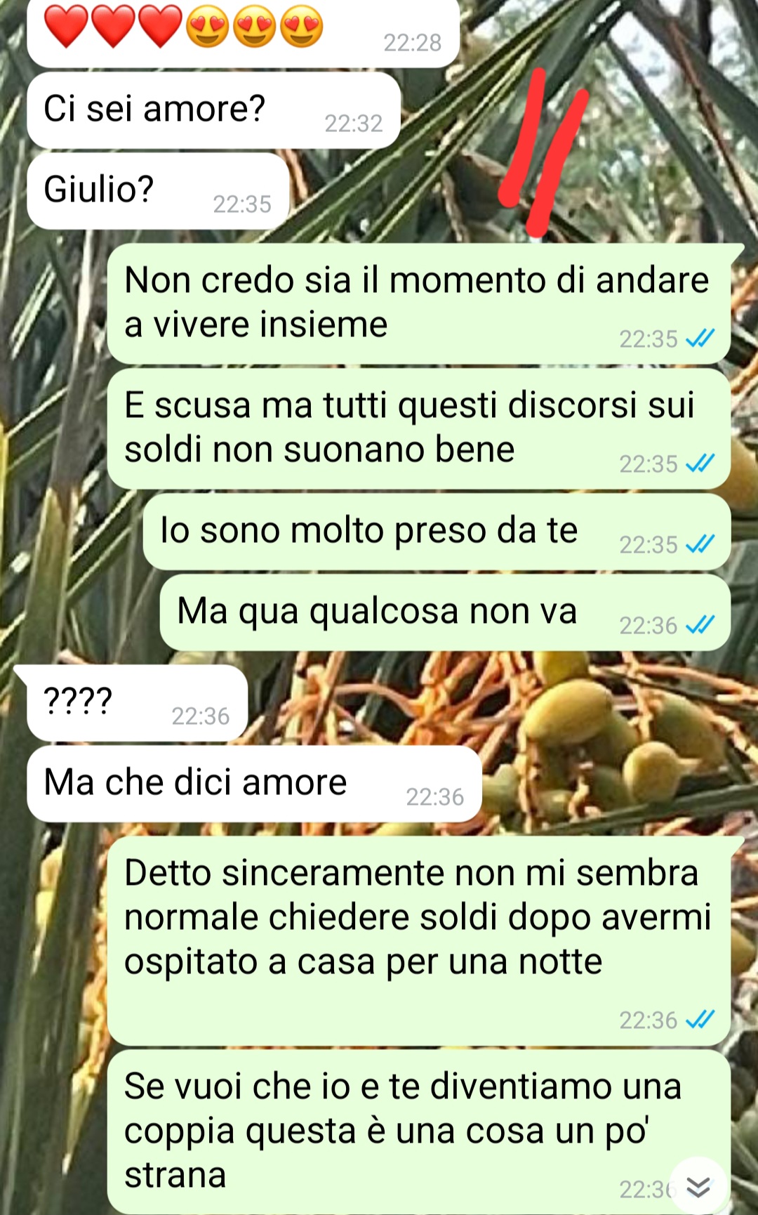 Il nostro fan racconta che l’incontro è avvenuto nel locale di un suo amico. L’amico spiega che da quel momento hanno iniziato a frequentarsi e a uscire insieme con una certa regolarità. Secondo il racconto del follower, dopo la prima uscita hanno continuato a vedersi quasi ogni giorno. Giulio racconta che fin da subito tra loro sembrava esserci una buona intesa: Anna gli appariva molto simpatica, scherzava spesso e gli sembrava anche una persona molto intelligente. Nel suo racconto aggiunge che ai suoi occhi era anche molto bella.