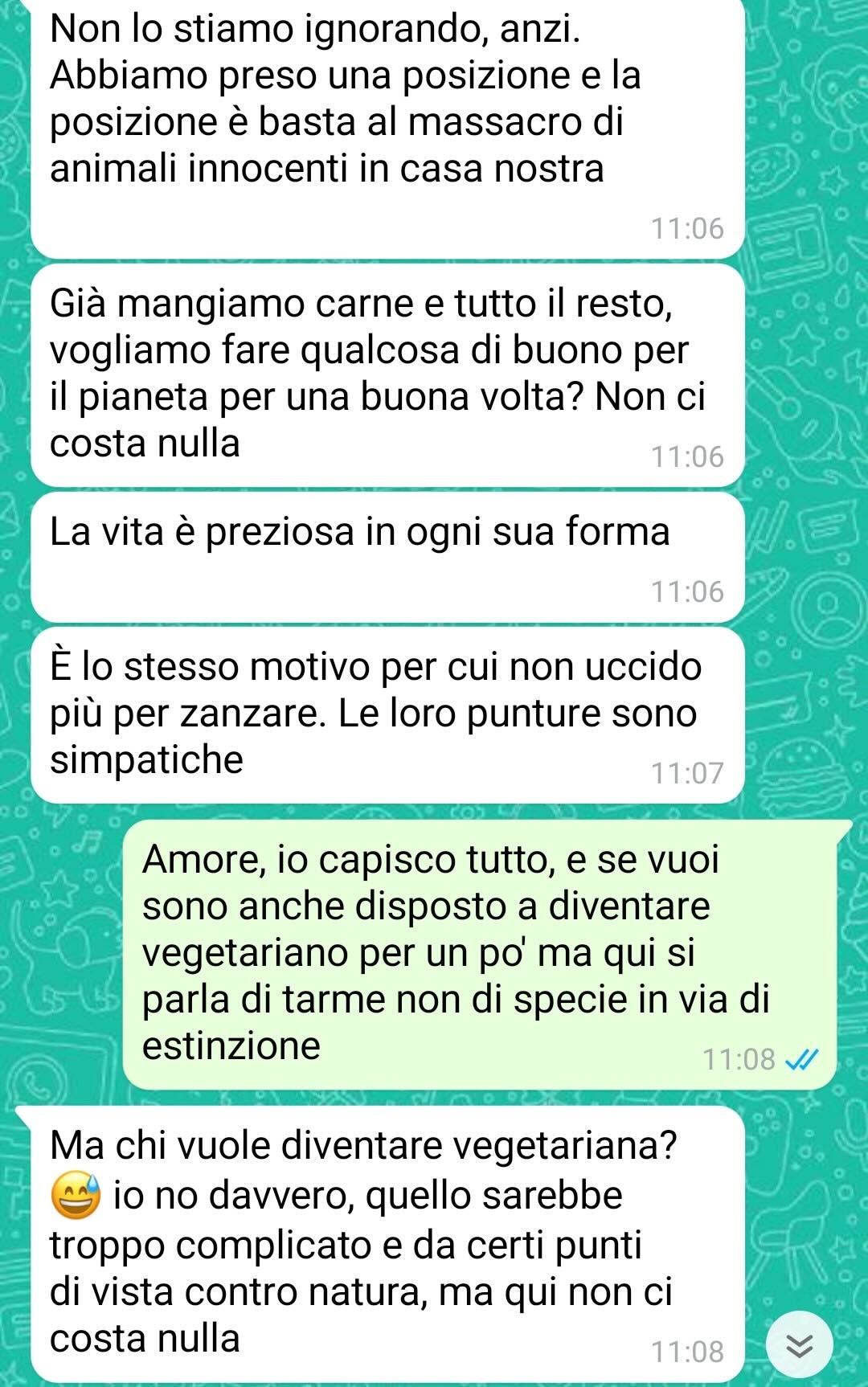 Il nostro fan si descrive come una persona semplice, con uno sguardo attento verso il bene comune. Precisa che, compatibilmente con le sue possibilità, cerca sempre di fare la sua parte per il mondo, consapevole di quanto oggi sia necessario. Tuttavia, chiarisce anche un concetto fondamentale per lui: ci sono dei limiti che non dovrebbero mai essere superati, soprattutto quando si parla di buon senso, igiene e comportamenti umani considerati normali.