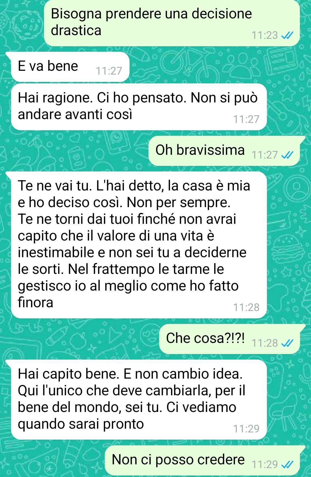 Persona che ha sempre ritenuto equilibrata e razionale, ha invece mostrato un atteggiamento che il nostro amico fatica a comprendere, e che ha dato origine – oltre che a un’invasione domestica – a un confronto diretto attraverso i messaggi che ha deciso di condividere.