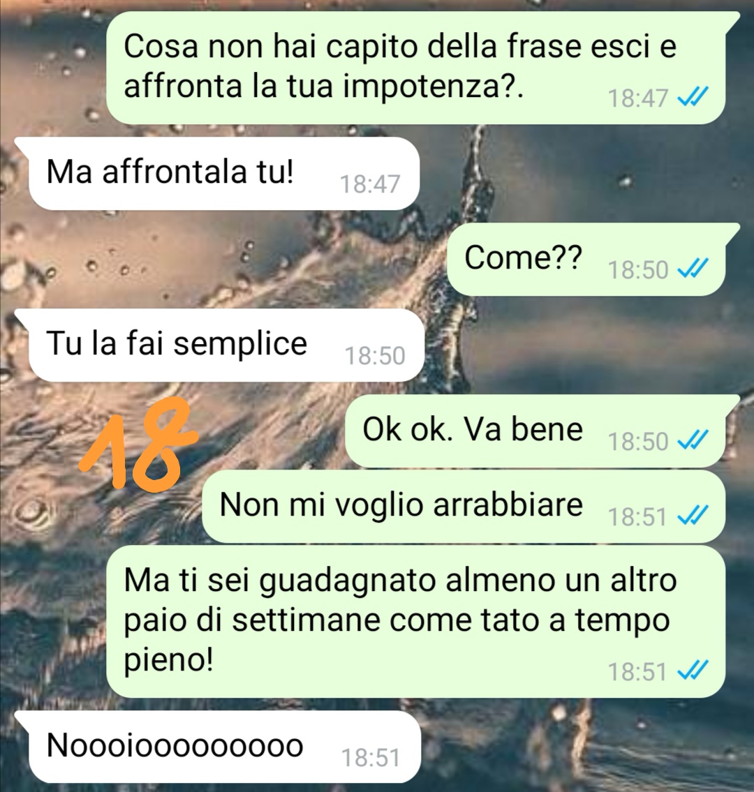 Da quel momento, però, la situazione prende una piega del tutto inaspettata. La nostra fan ammette di non aver immaginato neppure lontanamente quello che sarebbe potuto succedere in sua assenza. La chat che condivide con noi mostra infatti lo scambio avuto subito dopo, che rivela quanto l’incontro tra la tata e il fratello non sia andato esattamente come previsto. L’equilibrio già precario della gestione familiare si è trovato improvvisamente travolto da un imprevisto del tutto fuori programma.