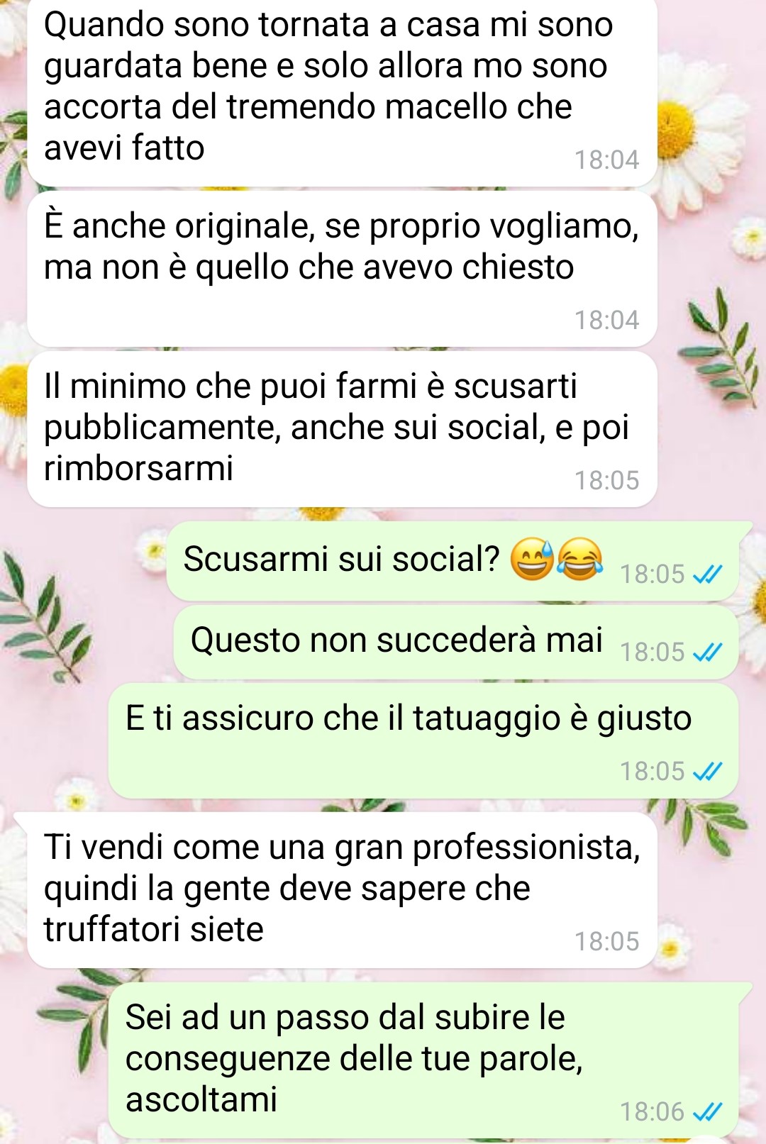 La nostra fan Marika racconta di essere una giovane tatuatrice che, partendo da zero, è riuscita a costruire una propria attività grazie a studio, impegno e costanza. Spiega che il suo studio oggi funziona discretamente bene, frutto di sacrifici e di un’attenzione costante verso i clienti. In un settore come il suo, sottolinea la nostra amica, le recensioni e le foto pubblicate dai clienti sono fondamentali per la reputazione e per il passaparola.