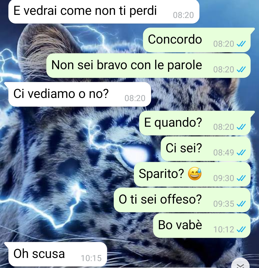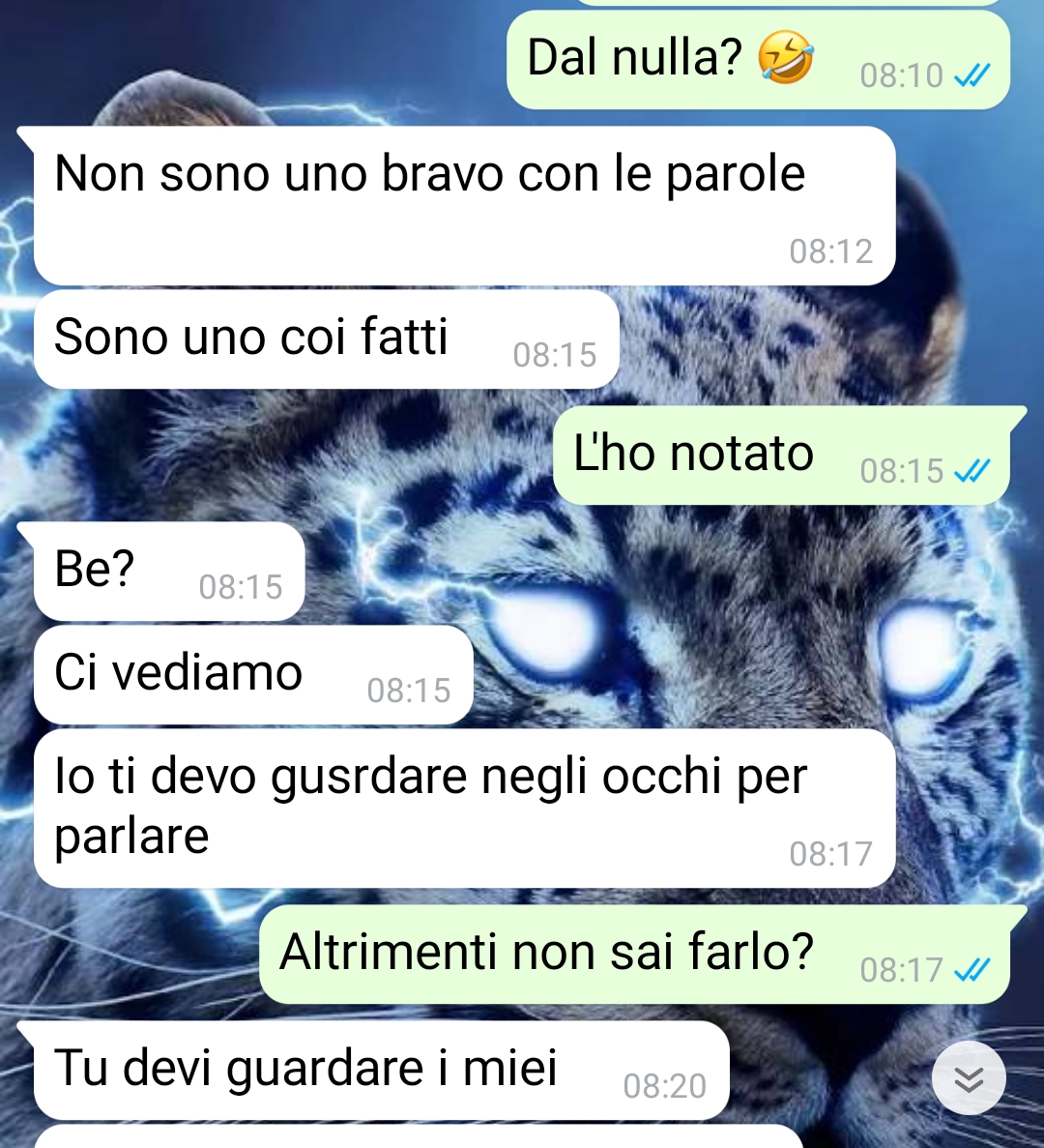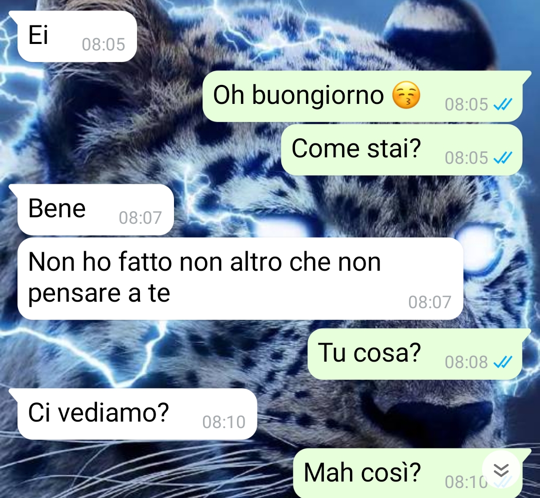 Sono Bianca e quella che vi sto mandando è la cosa più bella che leggerete oggi. Non forse la più bella nel senso di bellezza vera e propria, anche se da come parlava luidi se stesso avrebbe trasmesso la sua “bellezza” anche alla chat, ma sicuramente la più divertente. Anche un po’ inquietante a dire il vero, perché io l’ho presa sul ridere e tutto il discorso è finito in modo abbastanza tranquillo, perché io so farmi rispettare e ho un carattere forte, ma c’è da chiedersi cosa sarebbe successo se fossi stata più introversa o più insicura. Sinceramente non voglio pensarci e voglio solo farmi due risate su una conversazione che ha dell’assurdo. Dovete sapere che sono single, mi sono iscritta a una di queste tante app che ci sono ormai e ho conosciuto questo ragazzo con il quale ho chattato e gli ho dato il mio numero per conoscerlo meglio e, chissà, un giorno incontrarci. Il primo messaggio che mi ha mandato la mattina dopo avergli dato il numero è stato molto più diretto di quanto fosse stato sull’app, ma soprattutto il suo tentativo di corteggiamento è stato la cosa più assurda della mia vita.
