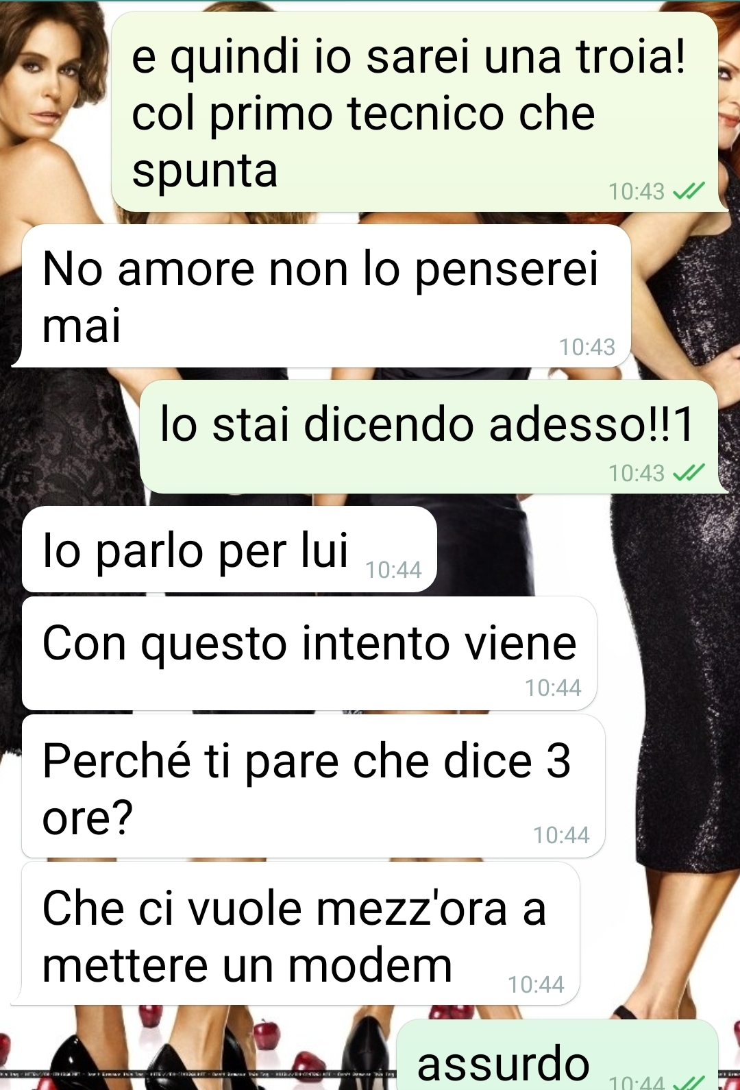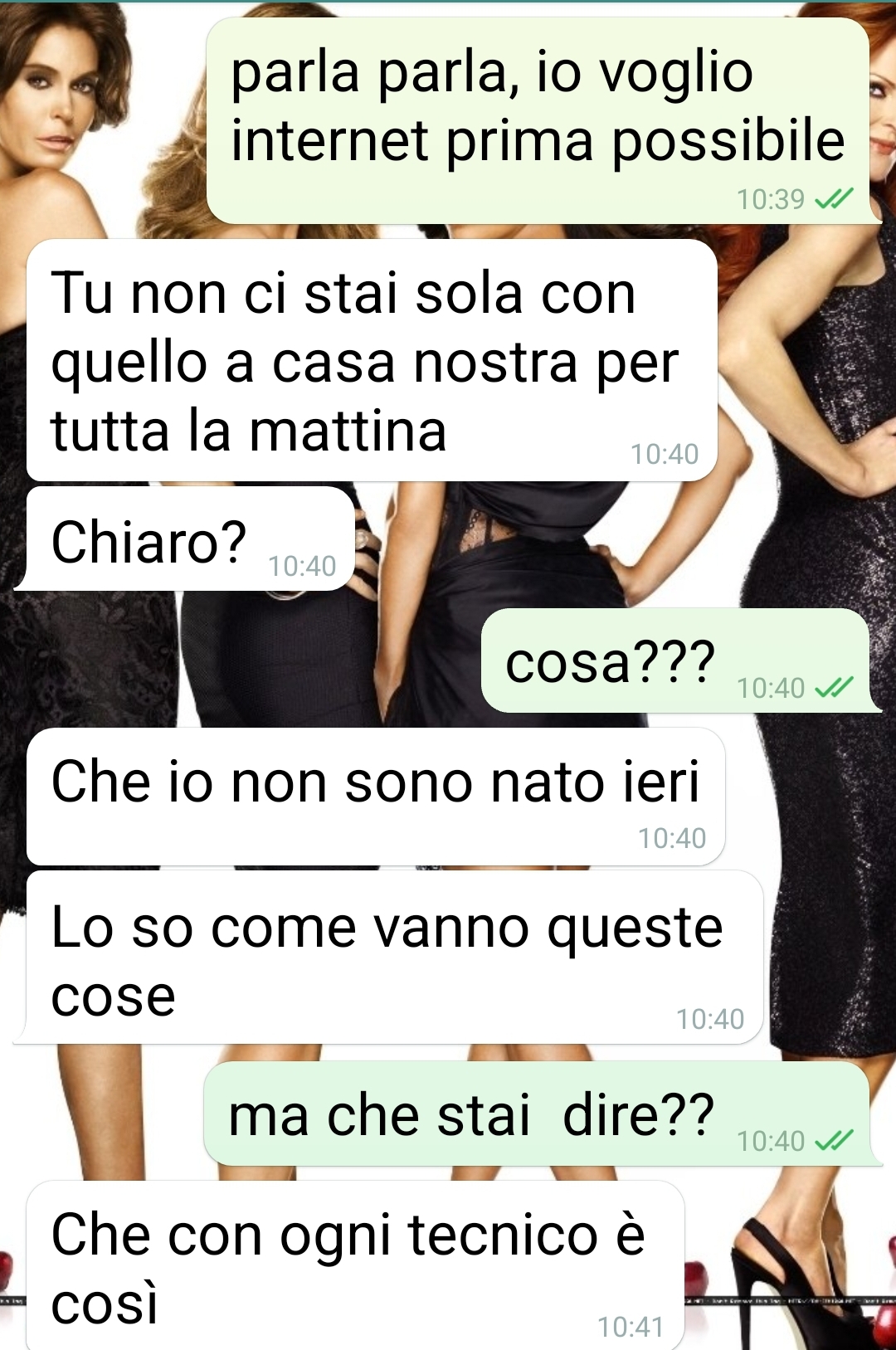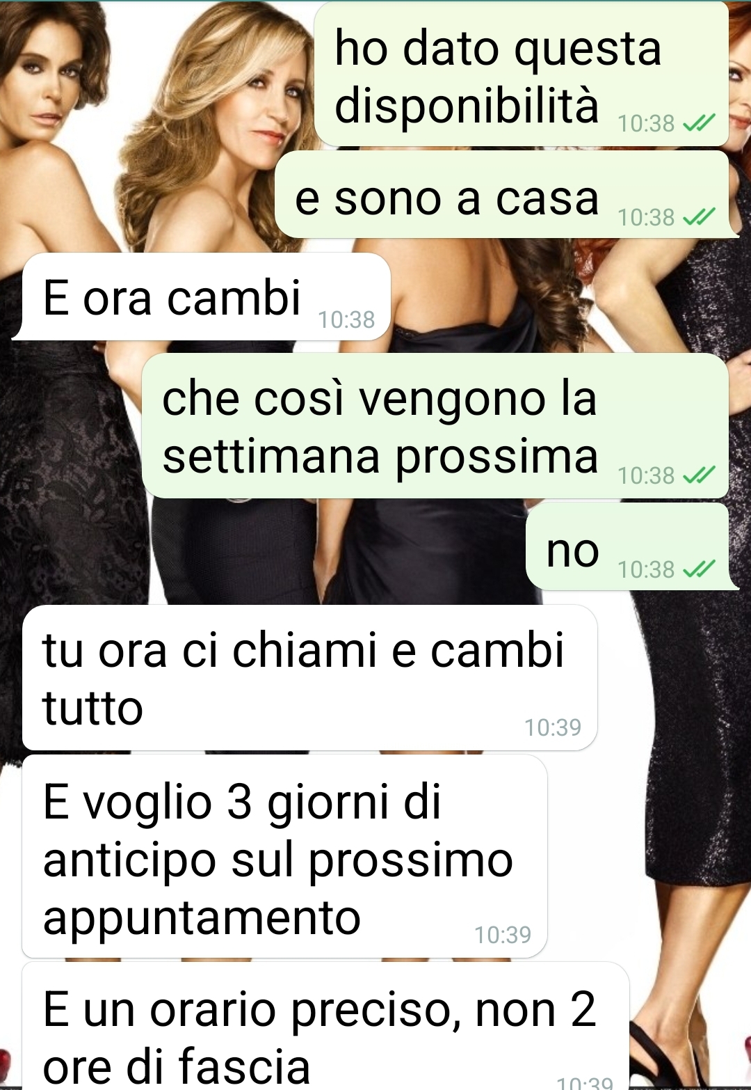 Il nostro fan riferisce di aver gestito personalmente la richiesta del servizio, contattando l’azienda e portando avanti la pratica. Nella mattinata, riceve quindi il messaggio con l’appuntamento fissato per l’intervento del tecnico e decide di inoltrarlo al marito, che in quel momento si trova al lavoro.
