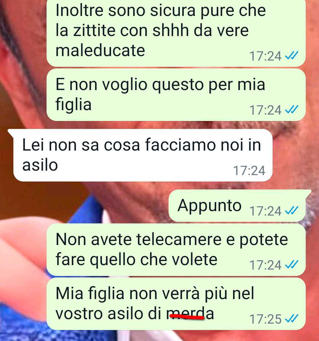 Preoccupata, ha deciso di parlarne direttamente con la maestra e di chiedere, ancora una volta, se fosse possibile installare delle telecamere nell’asilo. Ma la reazione della maestra è stata tutt’altro che rassicurante. Con questa chat, la mamma vuole condividere la sua esperienza con altri genitori che, come lei, hanno la continua preoccupazione di dover affidare i propri figli a persone di cui, alla fine, sanno ben poco. La fiducia è fondamentale, ma quando viene tradita, l’unica cosa che resta da fare è prendere una decisione.