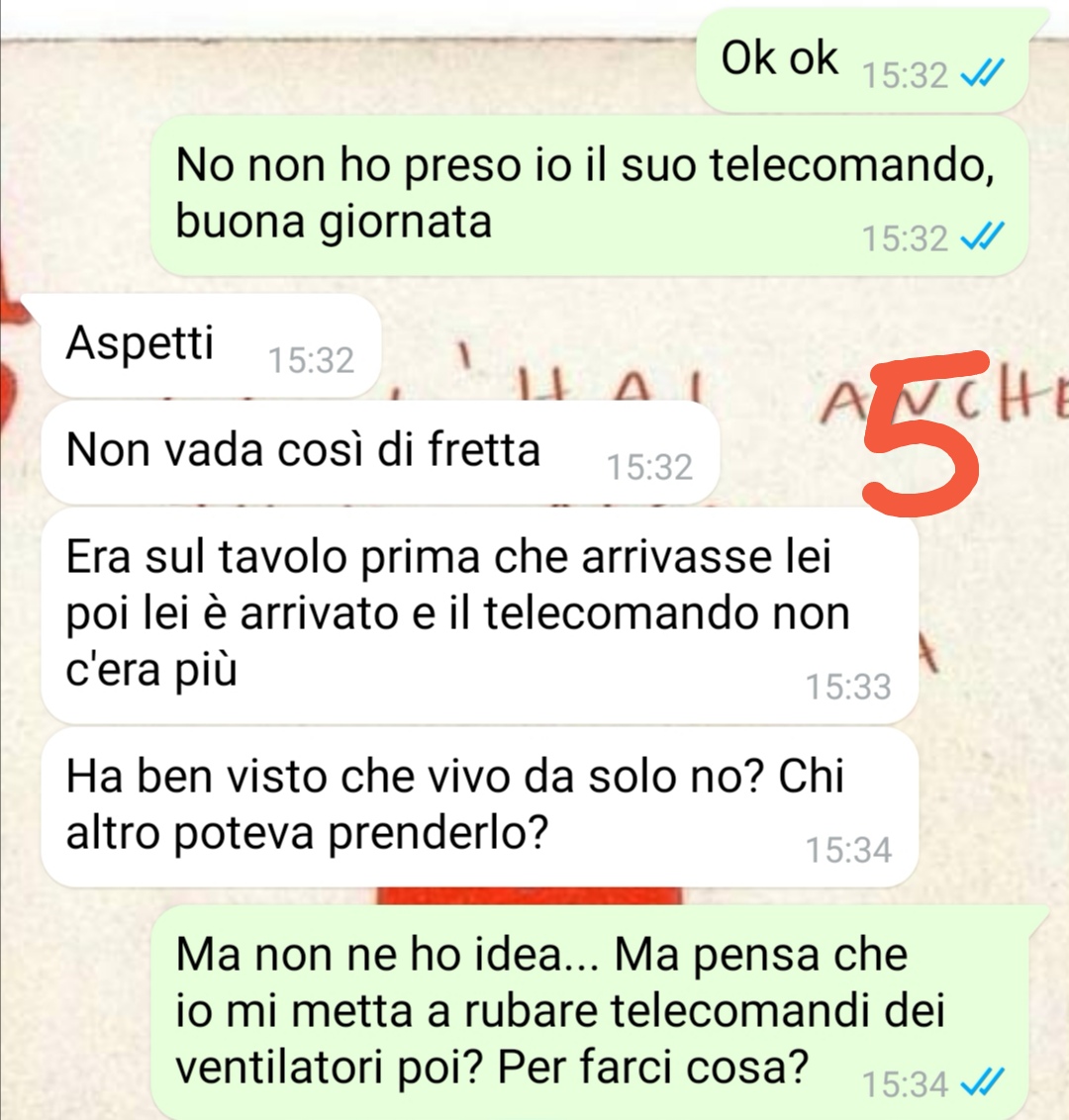 Il nostro fan racconta di voler condividere una chat che, a suo dire, potrebbe strappare un sorriso a chi la leggerà. Ammette che, sul momento, la situazione gli ha provocato un forte nervosismo, ma con il senno di poi ha scelto di interpretarla con maggiore leggerezza. Spiega di fare il tecnico dei televisori e antennista da molti anni, un lavoro che lo porta quotidianamente nelle case delle persone e che gli ha fatto vedere le situazioni più disparate.
