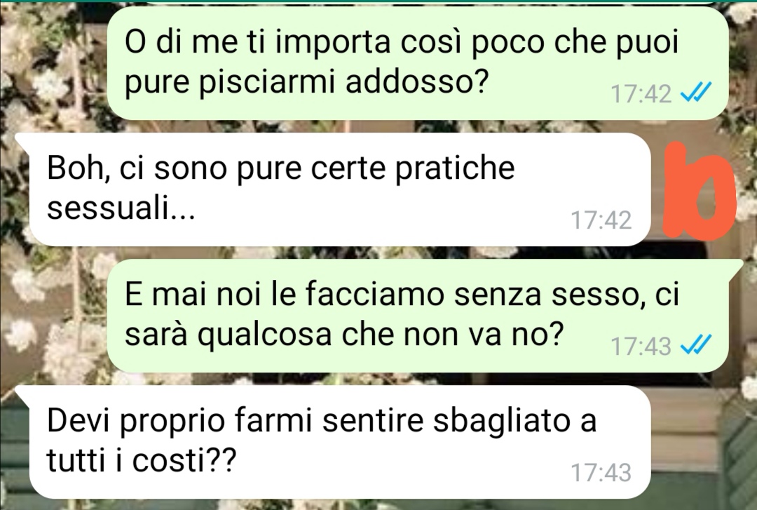 Il problema è emerso nel modo più intimo possibile: nel loro letto. Non si sofferma sui dettagli, ma lascia intendere che si tratta di una situazione fisica ripetuta che ha generato disagio. La prima volta ha cercato di minimizzare e di non far sentire il compagno in difficoltà, anche perché lui tende sempre a ridimensionare tutto, definendo lei esagerata. Ma col passare del tempo, e con la ripetizione del problema, la nostra follower ha compreso che la situazione non poteva più essere ignorata.