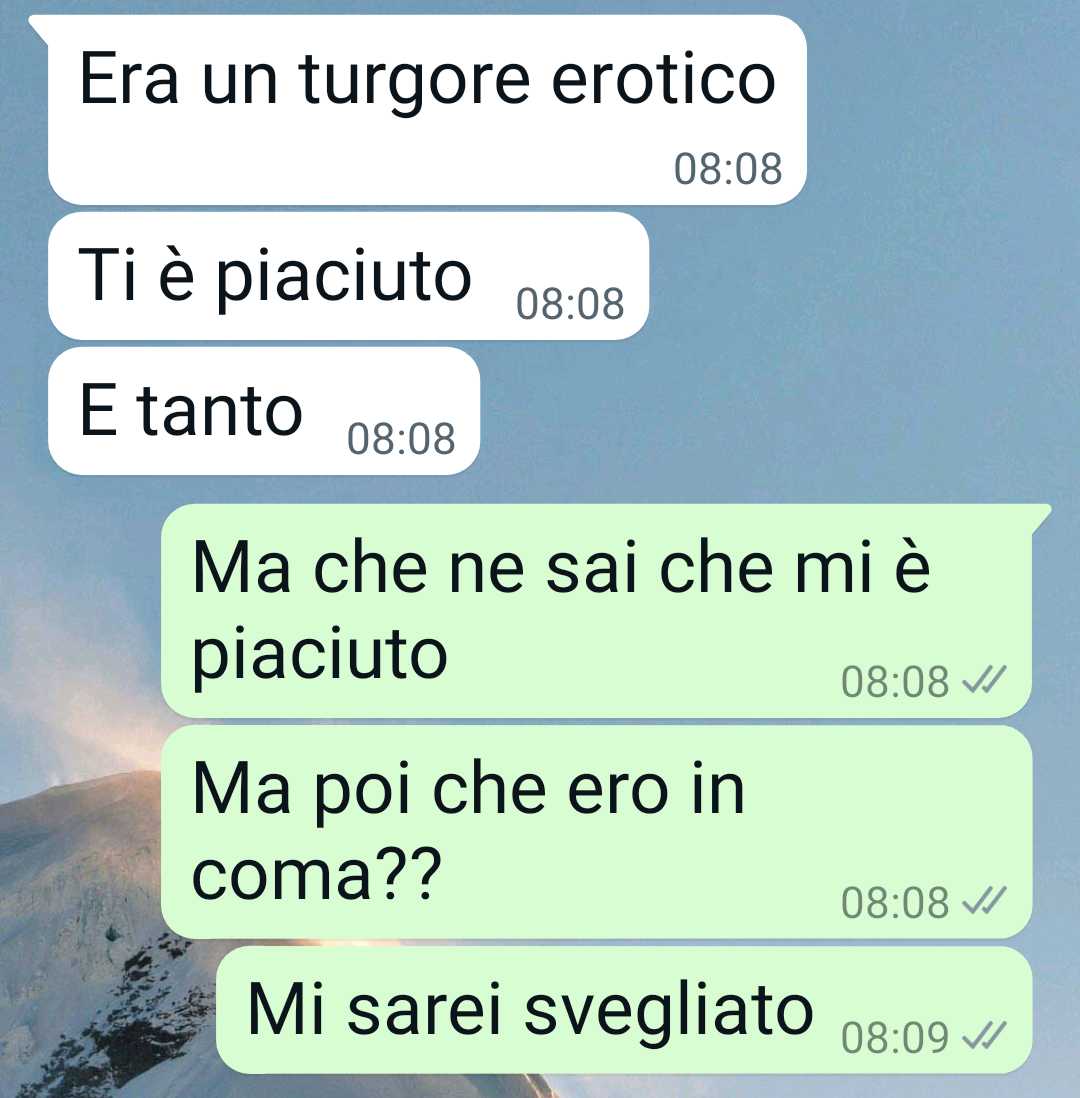 Il nostro fan spiega che la mattina seguente è uscito presto per andare al lavoro, mentre lei ancora dormiva. Ma poco dopo aver lasciato casa, ha iniziato a ricevere i suoi messaggi, dando il via a una conversazione che definisce surreale e che ha deciso di documentare con degli screenshot. Nella chat, la compagna gli avrebbe raccontato di averlo “messo alla prova” per capire se, anche nel sonno, poteva avere reazioni sospette che rivelassero un presunto tradimento.