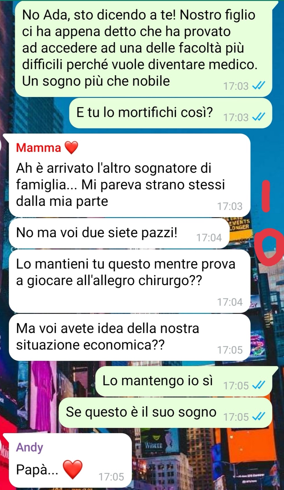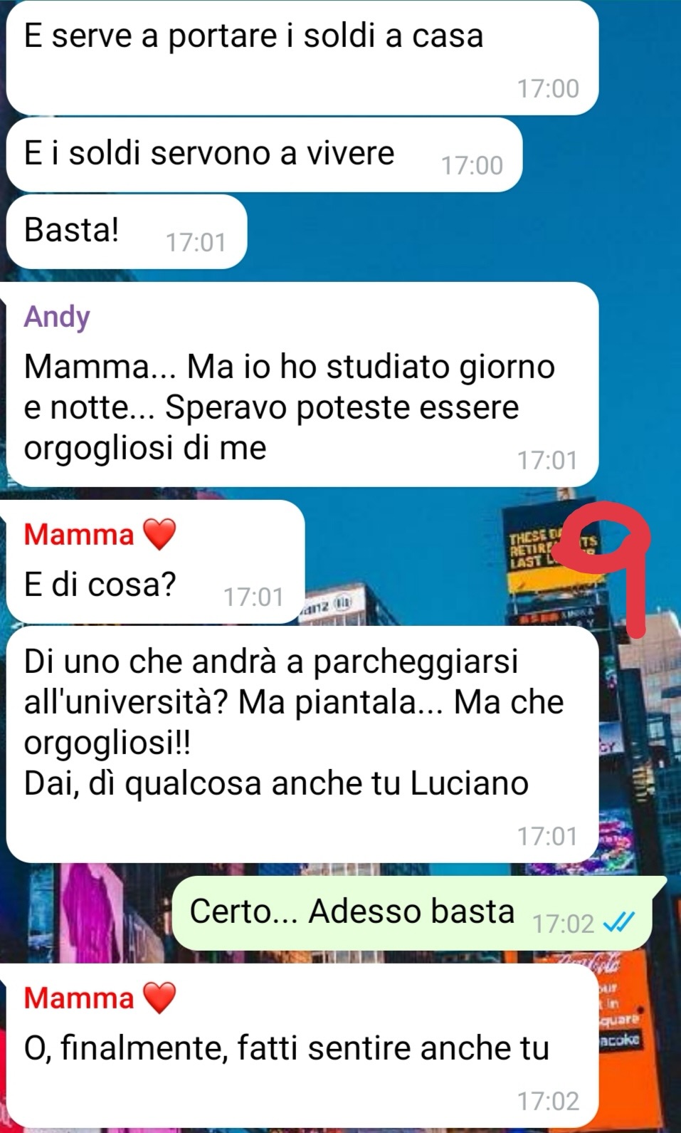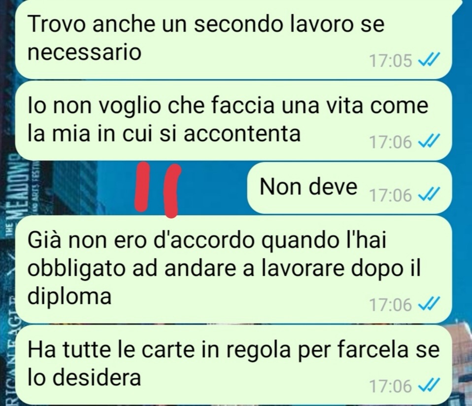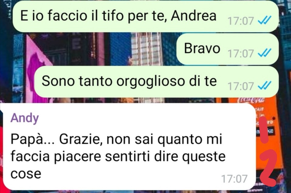 Andrea, consapevole di tutto questo, ha deciso di farsi carico della realtà in cui vivevano. Spinto in particolare dalla madre, molto pragmatica e attenta alla gestione economica della casa, ha messo da parte i propri sogni per cercare subito un lavoro. Una decisione che, se da un lato ha sollevato il padre da un peso, dall’altro gli ha lasciato un senso di amarezza per un percorso di vita che, forse, meritava di essere seguito fino in fondo.