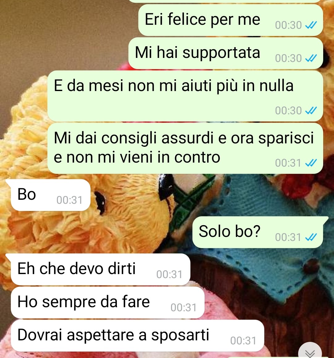 Tuttavia, col passare del tempo, qualcosa è cambiato. Ilenia ha iniziato ad assumere atteggiamenti strani, diventando sempre più distante proprio quando la nostra fan avrebbe avuto bisogno del suo sostegno. La sua assenza nei momenti più delicati dell’organizzazione ha acceso in lei qualche dubbio, fino a spingerla a un confronto diretto.