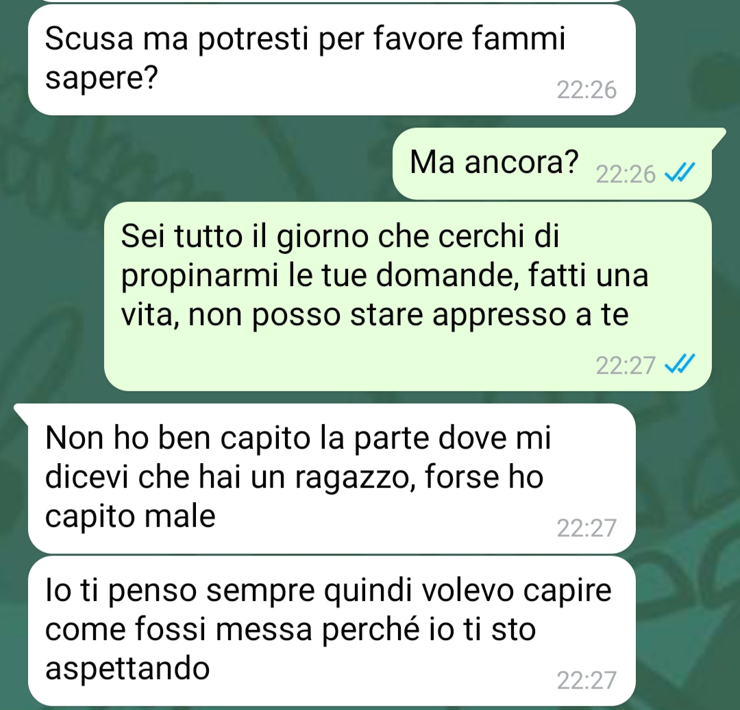 La follower descrive il comportamento dell’ex come insistente. A tratti, confessa di provare persino un po’ di tenerezza nei suoi confronti, forse per la difficoltà che lui dimostrerebbe nell’accettare la fine del rapporto. Tuttavia, la nostra fan evidenzia che esiste un limite oltre il quale l’insistenza diventa eccessiva.