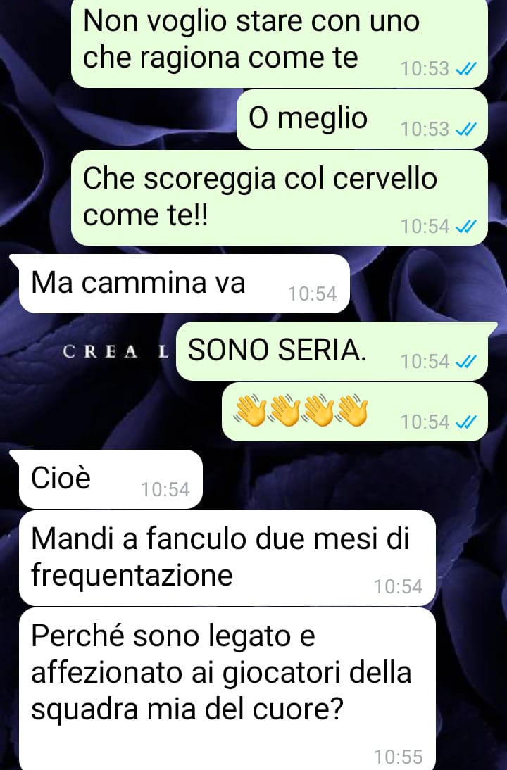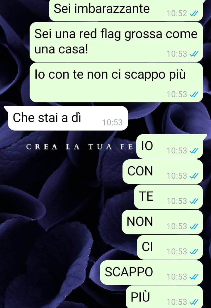 La nostra fan racconta di aver deciso di condividere una conversazione che ha segnato la fine della sua ultima frequentazione. Nel suo messaggio spiega che la storia riguarda un ragazzo conosciuto durante l’estate e con cui aveva iniziato a uscire più spesso verso la metà di settembre. La follower racconta di avere ventidue anni, mentre il ragazzo ne ha ventitré, e descrive quel periodo della vita come un momento in cui spesso si accettano inviti senza riflettere troppo, soprattutto quando a chiederlo è una persona che suscita interesse. Il nostro fan spiega che la conoscenza tra loro era iniziata in modo spontaneo e senza particolari complicazioni.