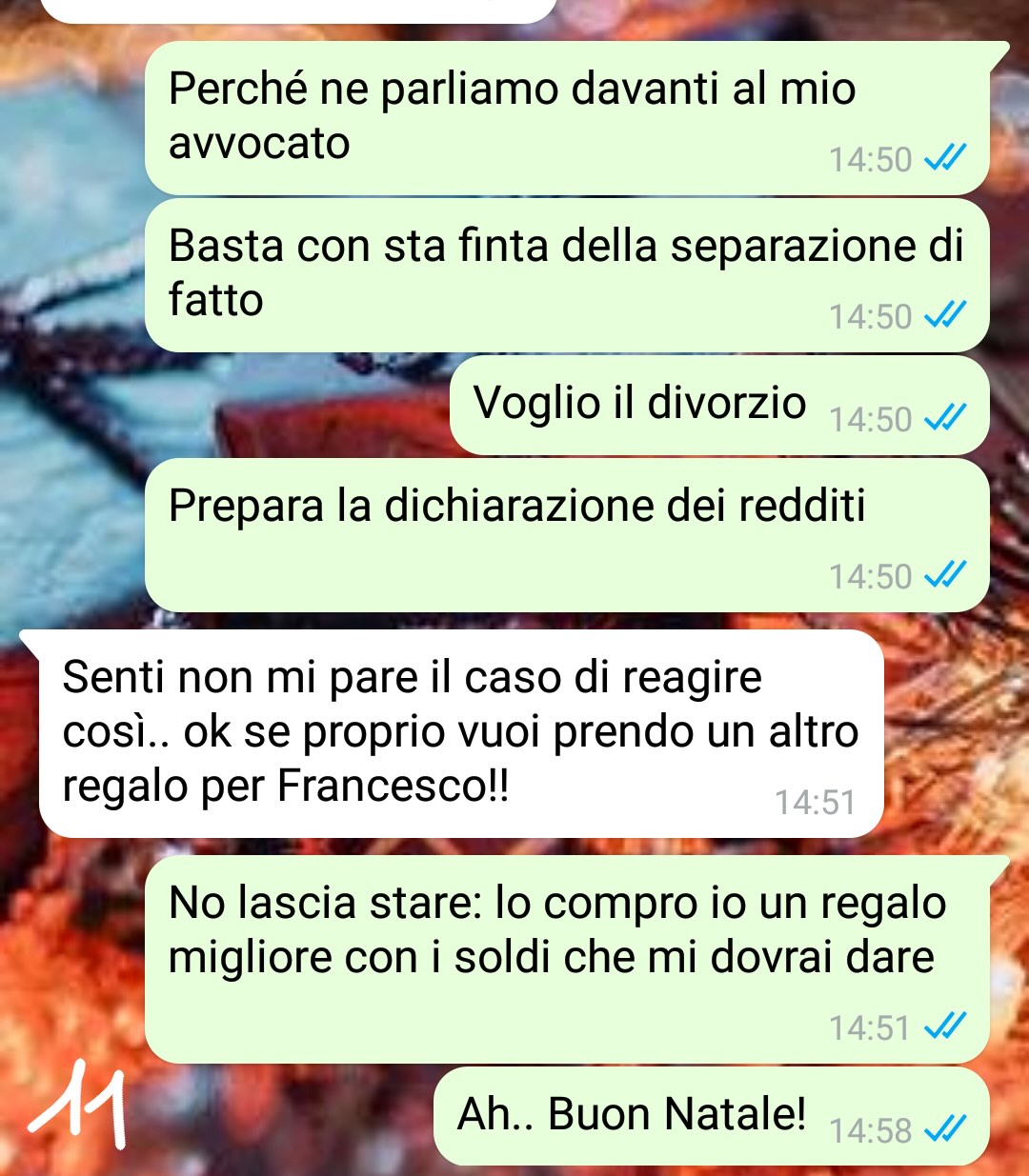 Tuttavia, Giancarlo non ha rinunciato alle sue abitudini: pur guadagnando molto più di lei, ha preteso che le spese per il mantenimento del figlio venissero divise esattamente a metà. Rossana spiega che questa situazione l’ha sempre fatta arrabbiare, ma ha resistito per il bene del figlio. Ora però, con l’arrivo di questo Natale, la sua pazienza è giunta al limite.