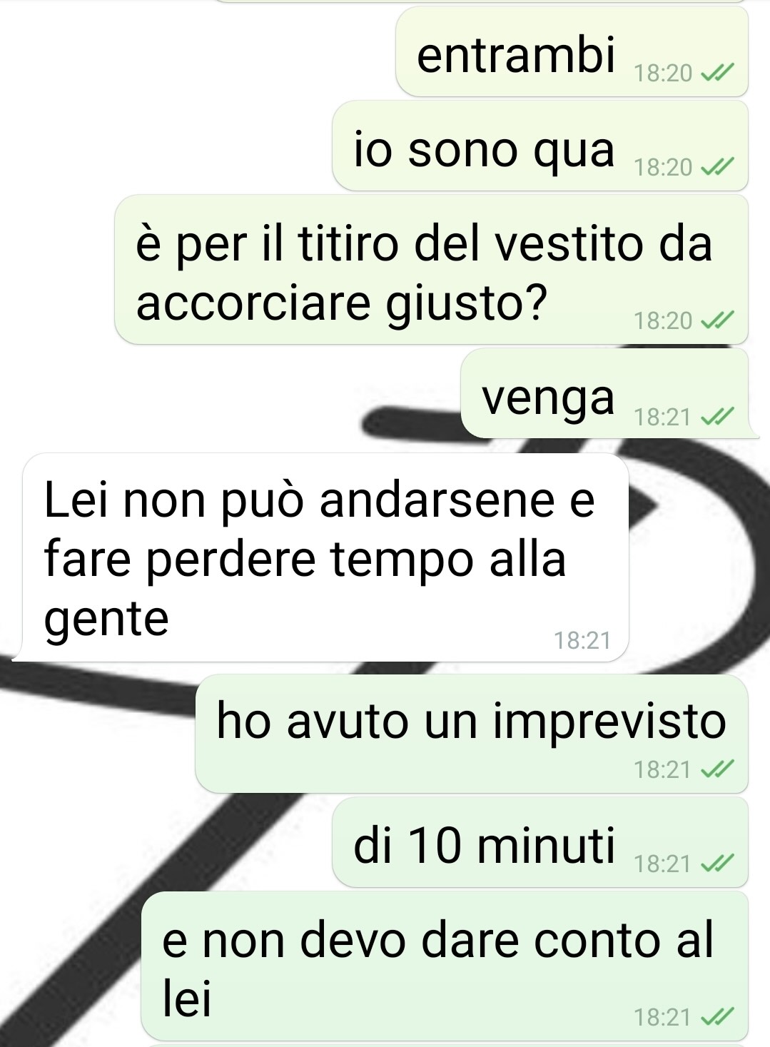 La nostra fan, sarta con una lunga esperienza alle spalle, ha deciso di condividere un episodio che definisce al limite dell’assurdo, accaduto nel contesto del suo piccolo e informale lavoro svolto nel pianterreno di casa. Dopo anni passati a cucire in un’azienda, oggi porta avanti qualche lavoretto sartoriale “di paese”, giusto per arrotondare e non perdere la manualità, come lei stessa racconta.