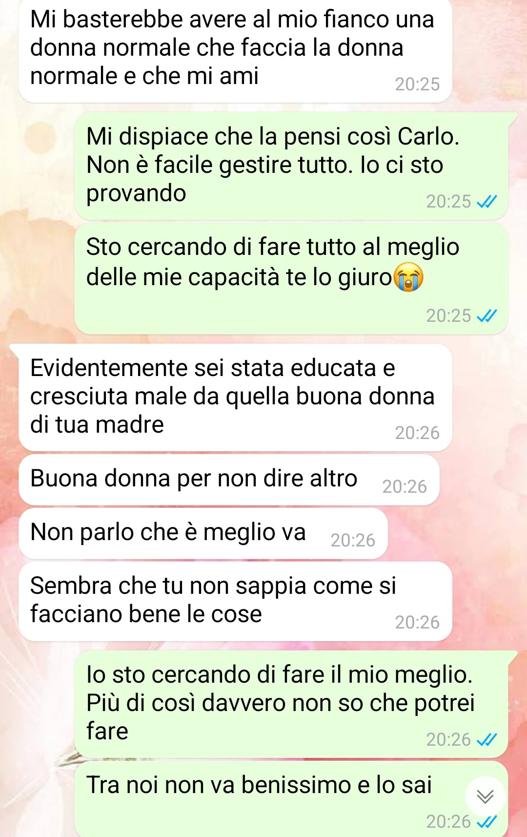 Sono Gioia. Per anni ho vissuto cercando di essere la moglie perfetta per Carlo, l’uomo che pensavo mi amasse e rispettasse. Ogni giorno mi svegliavo all’alba, preparavo la colazione, sistemavo la casa, lavoravo, mi occupavo dei bambini e cercavo di far quadrare tutto. Eppure, non era mai abbastanza. Carlo non perdeva occasione per svalutarmi. Le sue parole mi ferivano, ma continuavo a dirgli che avrei cercato di fare meglio, sperando che un giorno avrebbe visto i miei sforzi. Ma ogni sera era la stessa storia. Ogni commento negativo era un colpo al mio cuore, ma la goccia che fece traboccare il vaso arrivò un giorno quando, stanca e stressata, cercai di spiegargli quanto fosse difficile gestire tutto, ma lui non capì, anzi. Fu in quel momento che decisi che dovevo fare qualcosa. Parlai con mia madre e organizzai un piano per allontanarmi, per ritrovare me stessa e capire cosa volevo veramente. Il problema è che un conto è farsi dei film mentali, un conto è fare i conti con la realtà, con i legami, con i ricordi, con gli affetti, e con la paura del futuro. Questa è la storia di quando ho cercato di cambiare per sempre la mia vita.