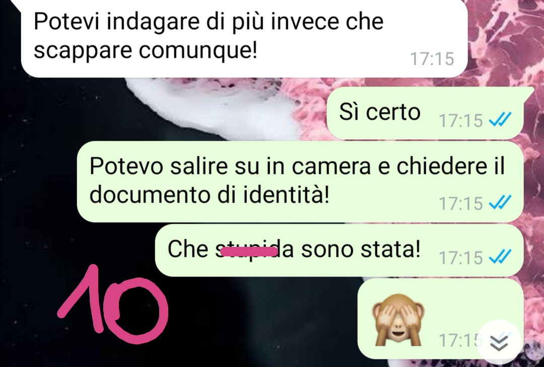 Un pomeriggio, dopo aver trascorso alcune ore fuori per sbrigare diverse faccende, la nostra follower rientra nell’abitazione dei genitori. Appena varcata la soglia, inizia a percepire dei rumori insoliti provenienti dall’interno della casa. In un primo momento non comprende immediatamente di cosa si tratti, ma nel giro di pochi istanti – racconta – la situazione le appare chiara e inequivocabile.