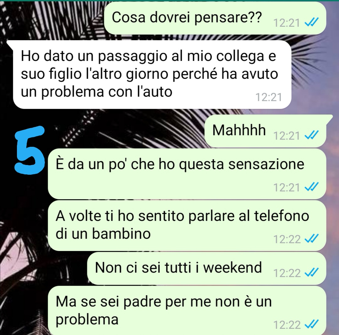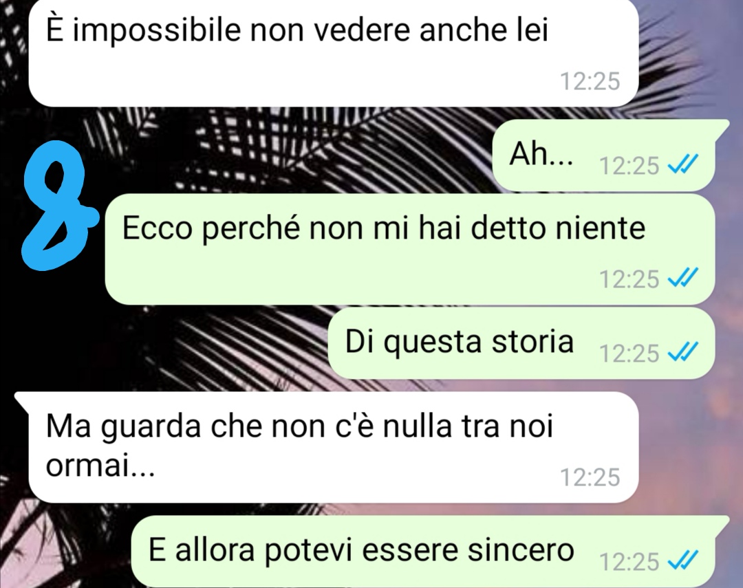 La nostra fan, una ragazza di 26 anni, ha deciso di condividere una conversazione avvenuta con il ragazzo che frequenta da circa sei mesi. Il suo nome è Riccardo e, secondo quanto racconta, si sono conosciuti online tramite Instagram. Dopo un periodo iniziale di messaggi, si sono incontrati dal vivo e da allora hanno scelto di continuare a vedersi con costanza.