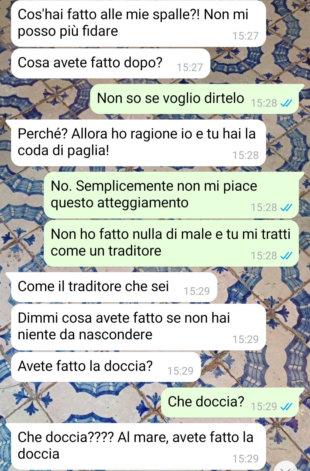 Tutto è iniziato quando una cara amica del nostro follower, Alessandra, lo ha invitato a passare qualche giorno da lei in Sicilia. I due si conoscono da tempo, avendo studiato insieme al nord, e ora, vivendo lontani, si vedono molto raramente. L’invito, quindi, è stato accolto con piacere. Precisa che Alessandra non ha molto spazio in casa, e per questo motivo ha deciso di partire da solo, senza coinvolgere Marina nel viaggio. A suo dire, non c’era nulla di male in tutto questo, anche perché la fidanzata non conosce particolarmente bene Alessandra.