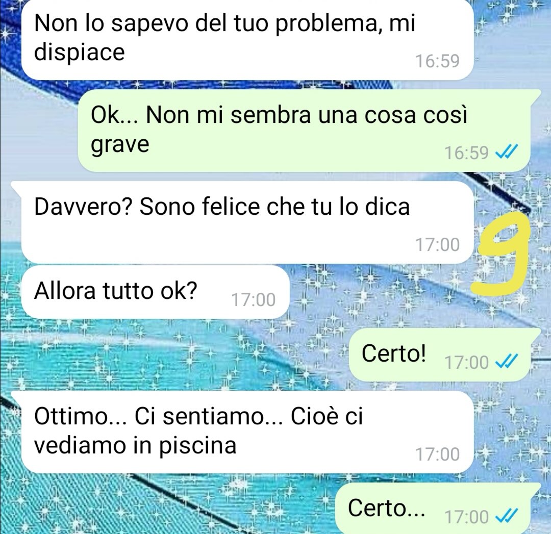 Beatrice si allena regolarmente in un centro sportivo, dove frequenta anche una squadra maschile di pallanuoto. In particolare, racconta di aver incrociato spesso uno dei ragazzi della squadra, anche se tra loro c’erano stati solo brevi scambi di saluti o parole di circostanza, legati alla coincidenza degli orari di allenamento. Nulla che potesse far pensare a un legame o a una conoscenza vera e propria.