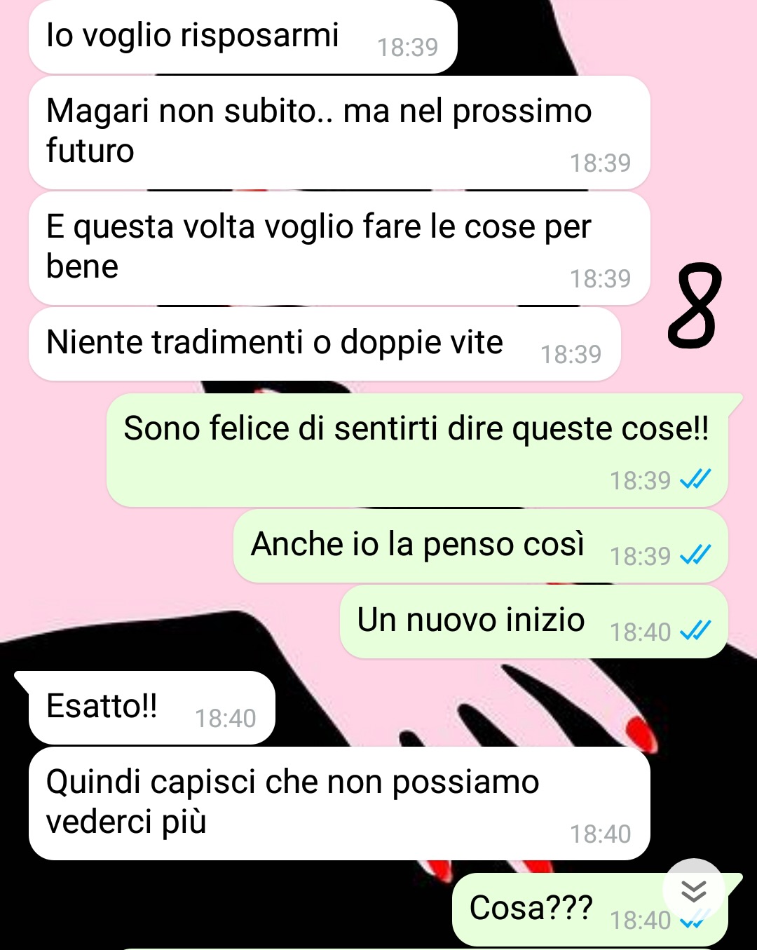 La nostra fan racconta una storia lunga, complessa e carica di emozioni contrastanti. Una storia fatta di attese, promesse, illusioni e lunghi silenzi, vissuta nel ruolo scomodo e doloroso dell’amante.