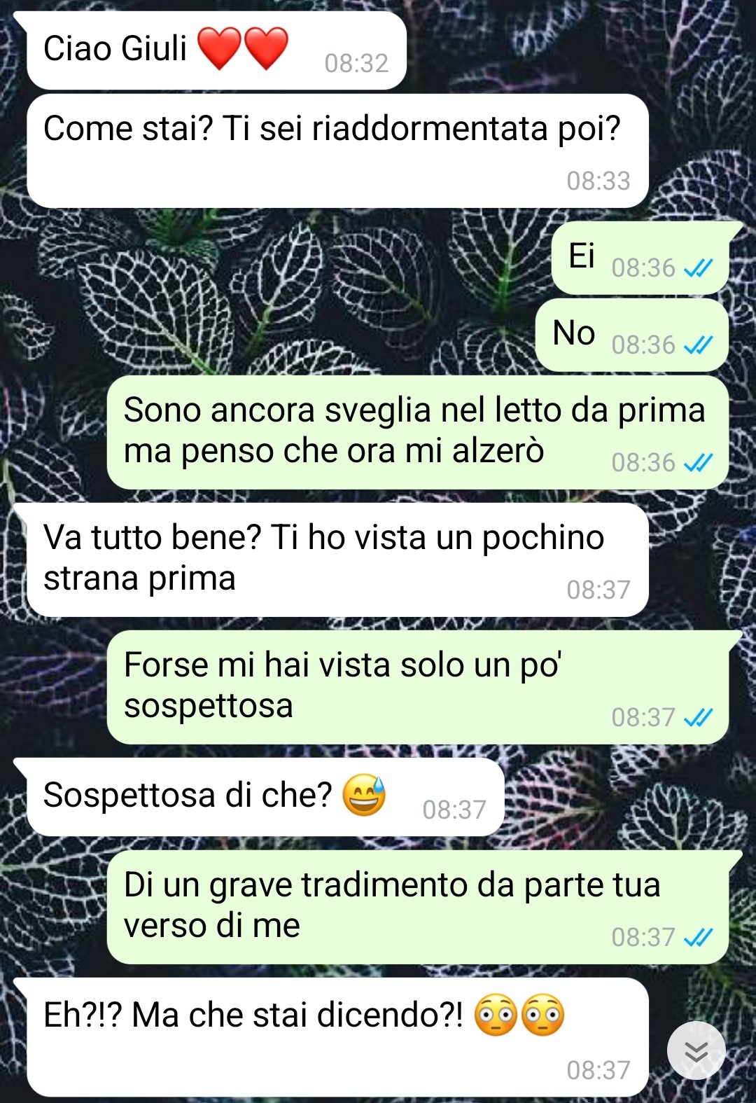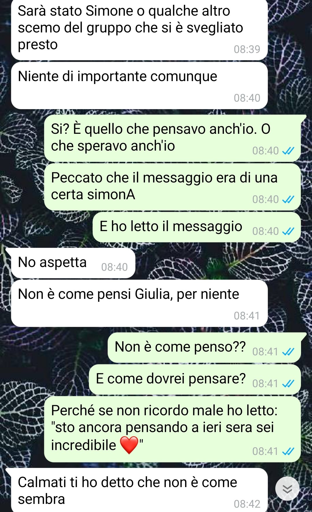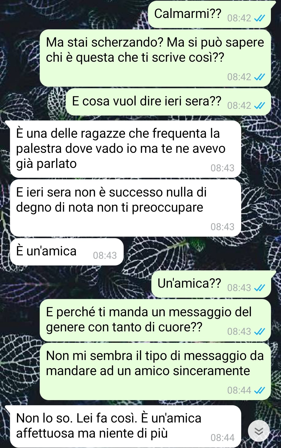 Non avrei mai pensato di trovarmi in una situazione del genere. Io e il mio fidanzato stavamo insieme da tre anni, e tutto sembrava andare bene. O almeno così credevo. Sicuramente è un ragazzo molto bello e desiderato, di cui però credevo di potermi fidare…appunto credevo. Tutto è poi cambiato l’altra mattina, quando per puro caso ho visto una notifica su WhatsApp. Un messaggio di una certa “Simona” che diceva una cosa piuttosto ambigua. Il cuore ha iniziato a battermi all’impazzata, ma non volevo saltare a conclusioni affrettate. Così, ho chiesto spiegazioni a Luca. Mi sono trovata con mille dubbi: non riuscivo a capire se aveva davvero tradito la mia fiducia o era solo una grande coincidenza. Davvero il ragazzo che mi era stato vicino per così tanto tempo poteva aver fatto una cosa del genere? Non era possibile, ma la testa mi scoppiava e dovevo scoprire la verità. Non sono una ragazza gelosa, ma ho avuto tante delusioni e non voglio più perdere tempo con persone che non merito il mio tempo e il mio amore. Quello che è certo è che qualcosa tra noi è cambiato da quel momento.