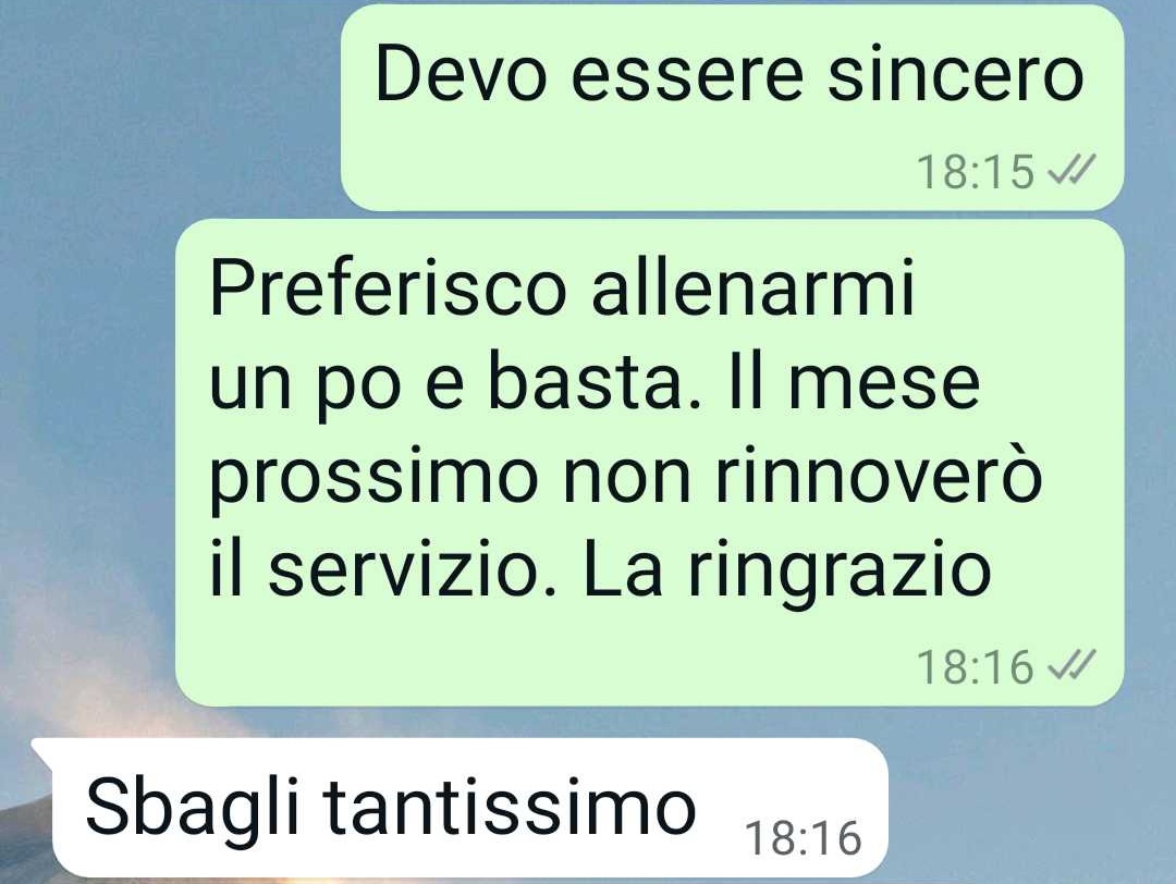 Il nostro fan ha raccontato un episodio che lo ha colpito in modo particolare e che ha deciso di condividere come forma di sfogo. Si è definito una persona dal fisico gracile e, proprio per questo motivo, ha scelto di iscriversi in palestra per migliorare la propria condizione. All’interno del percorso di allenamento, ha anche attivato un servizio di consulenza nutrizionale, nella speranza di ricevere indicazioni utili e personalizzate.