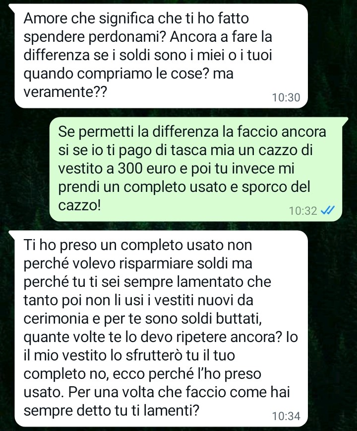 La settimana precedente, Giacomo aveva deciso di fare un gesto carino nei confronti della moglie, acquistandole un vestito elegante da indossare per la cerimonia. Sottolinea che si è trattato di una spesa importante per le sue possibilità economiche, ma che lo ha fatto volentieri, convinto che lei avrebbe apprezzato il pensiero e la cura nel volerla far sentire bella e a suo agio in un giorno di festa.