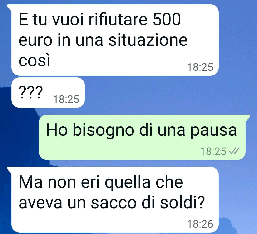 Una nostra fan di nome Carmen ci ha scritto per condividere un momento delicato della sua vita personale. Ci racconta di essere arrivata a un punto di forte stanchezza, sia fisica che mentale, al punto da decidere di prendersi due settimane di vacanza. Una scelta che, però, ha scatenato un’accesa discussione con il suo compagno, che considera la decisione irresponsabile dal punto di vista economico.