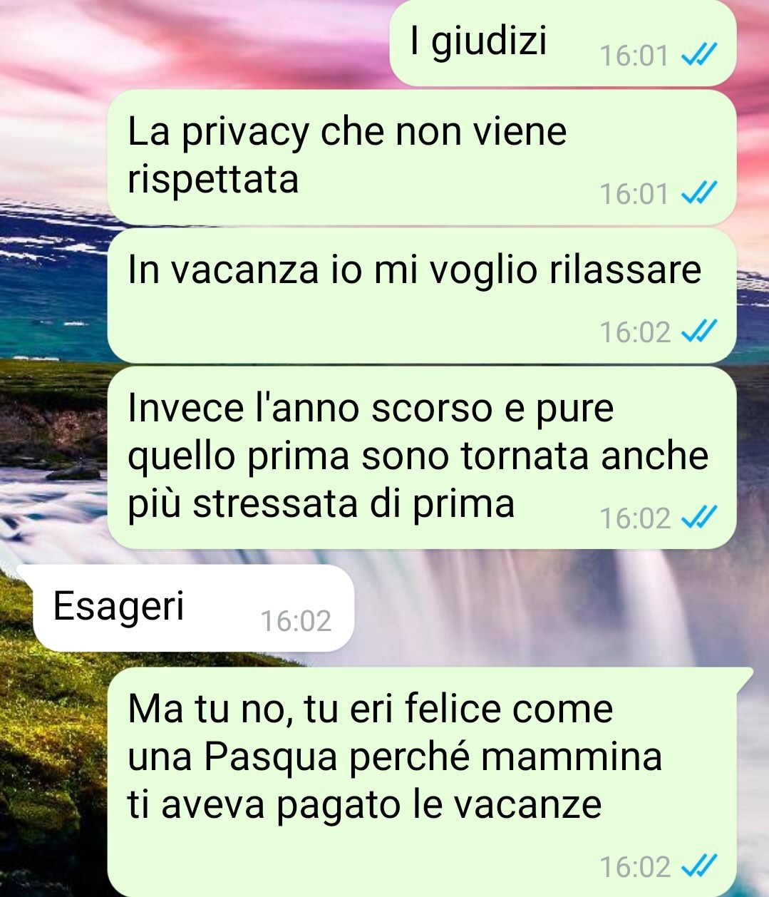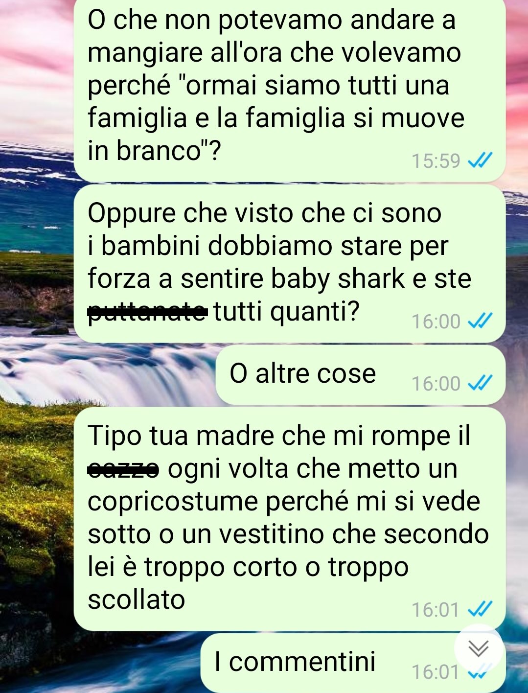 La nostra fan si chiama Valentina e nel suo racconto si interroga su quanto una persona possa sopportare prima di arrivare al punto di scoppiare. L’amica spiega di leggere spesso, sulla pagina, numerose storie di tradimenti e di relazioni in cui molte persone finiscono per accettare comportamenti dolorosi da parte del partner, arrivando talvolta a fare grande fatica nel dire “basta”. Di fronte a queste testimonianze, la nostra fan racconta di provare una profonda comprensione verso chi vive situazioni simili.