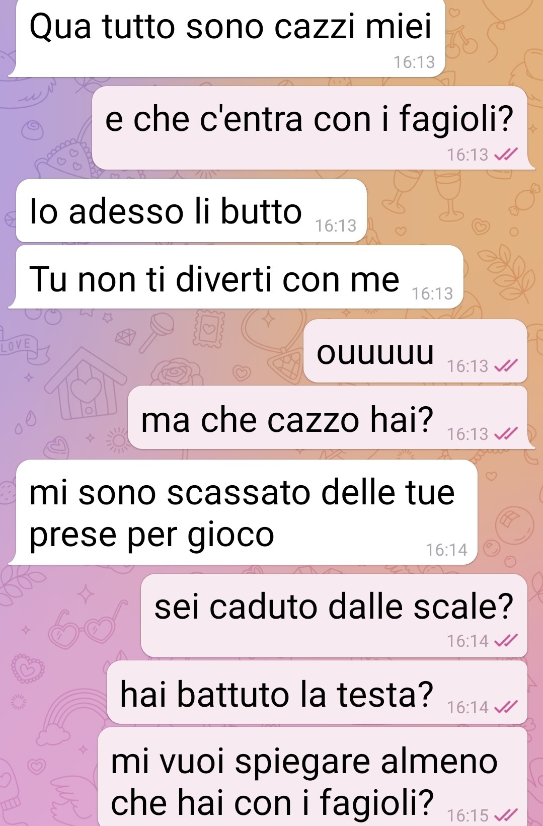 Il mio compagno mi ha piantato un casino per una strana casistica tra il nostro pranzo e i suoi impegni lavorativi. Io sono Letizia e dovete assolutamente pubblicarmi questa chat che è venuta fuori con Marco, il mio compagno. È una cosa che mi ha fatto ridere e incazzare allo stesso tempo, e merita di essere letta. E lui merita di essere svergognato e preso per il culo. Anche perché parliamo di un “uomo” di 38 anni che dipende totalmente da me. In casa non è in grado nemmeno di aprire una scatoletta di tonno. Ok, la colpa è pure mia che l’ho abituato così. Per adesso non mi pesa ma voglio sbeffeggiarlo insieme a voi. Da dove parte tutto: ho messo i fagioli a mollo nell’acqua per farli il giorno successivo a pranzo. Sono fuori casa, lui rientra e mi scrive incazzato. Ci ho messo un po’ a capire il tutto, veramente tragicomico. Alla fine è veramente una cazzata da niente. Ma lui è riuscito a farla diventare una tragedia. E infine a farmi pure incazzare di brutto.
