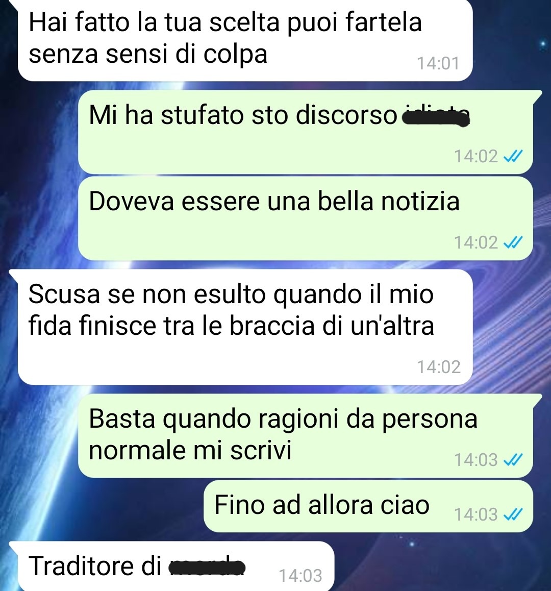 La discussione nata tra loro, però, è degenerata più del previsto, trasformandosi in un vero e proprio conflitto. È stato questo a spingere il nostro follower a condividere la chat con la community di Commenti Memorabili, convinto che quelle parole mostrino chiaramente quanto accaduto e quanto il tutto sia sfuggito di mano.