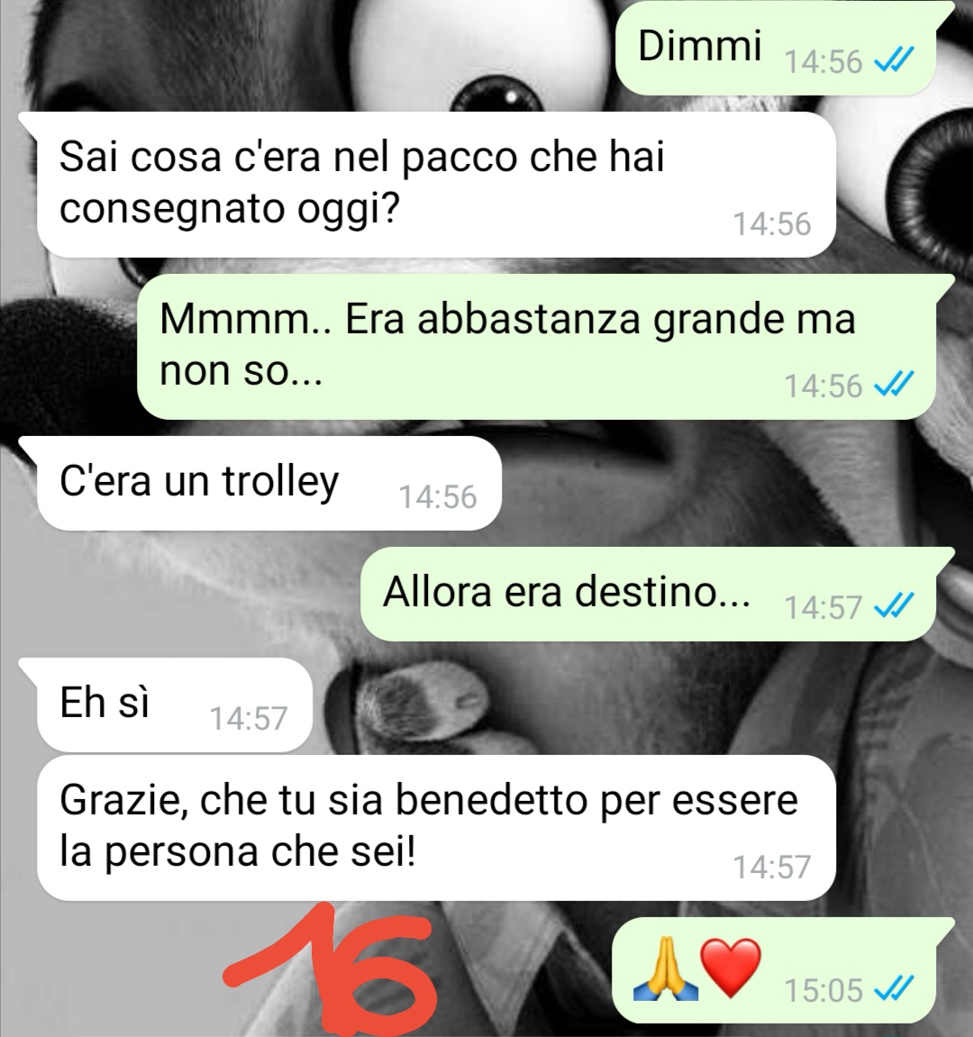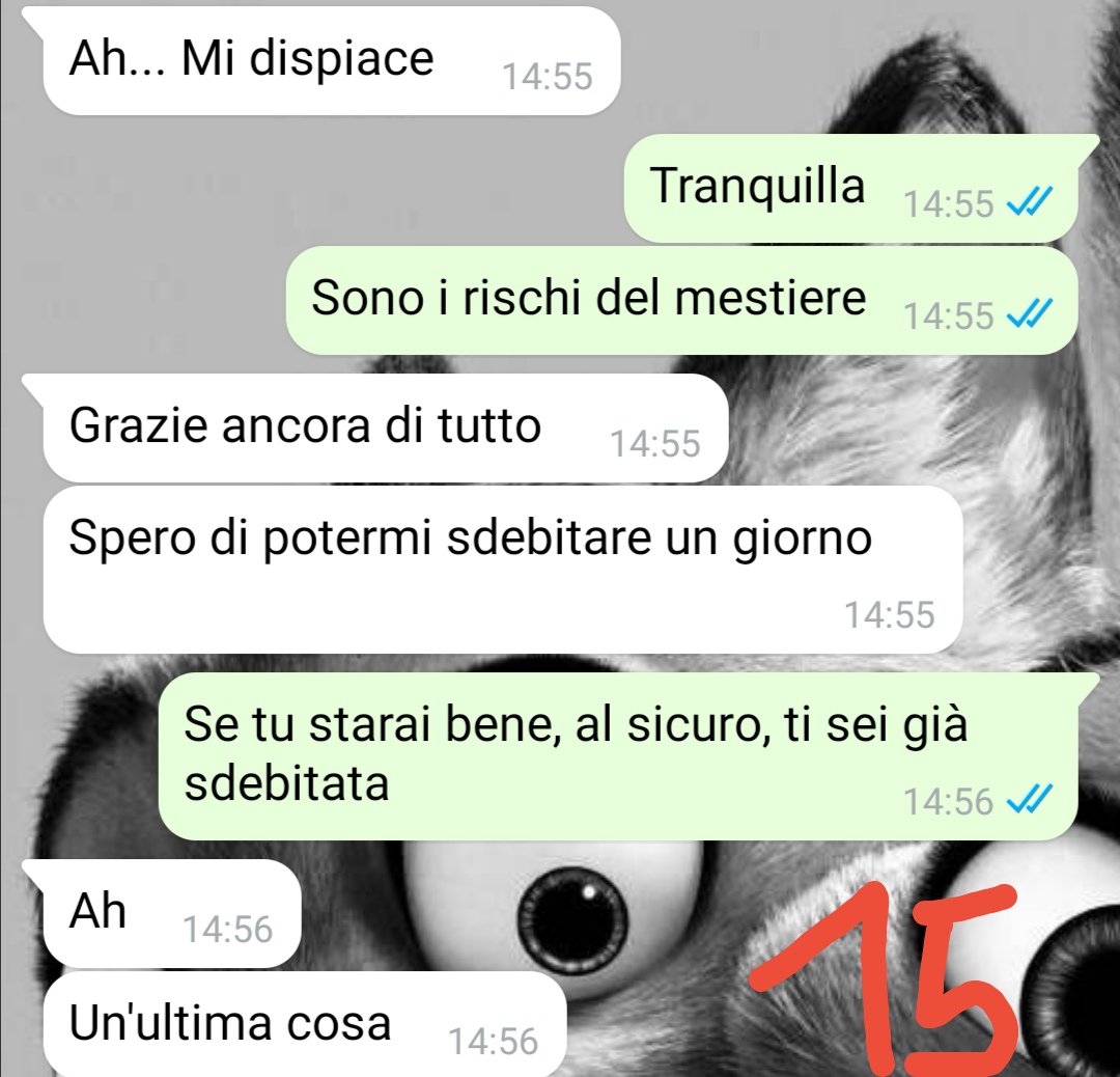 Raffaele descrive un crescendo di dubbi e stranezze che lo hanno portato a trovarsi in una situazione che non avrebbe mai immaginato durante una normale giornata di consegne. La chat che ha scelto di condividere documenta proprio quel passaggio, quando da una semplice rettifica di indirizzo si è arrivati a un episodio decisamente insolito.