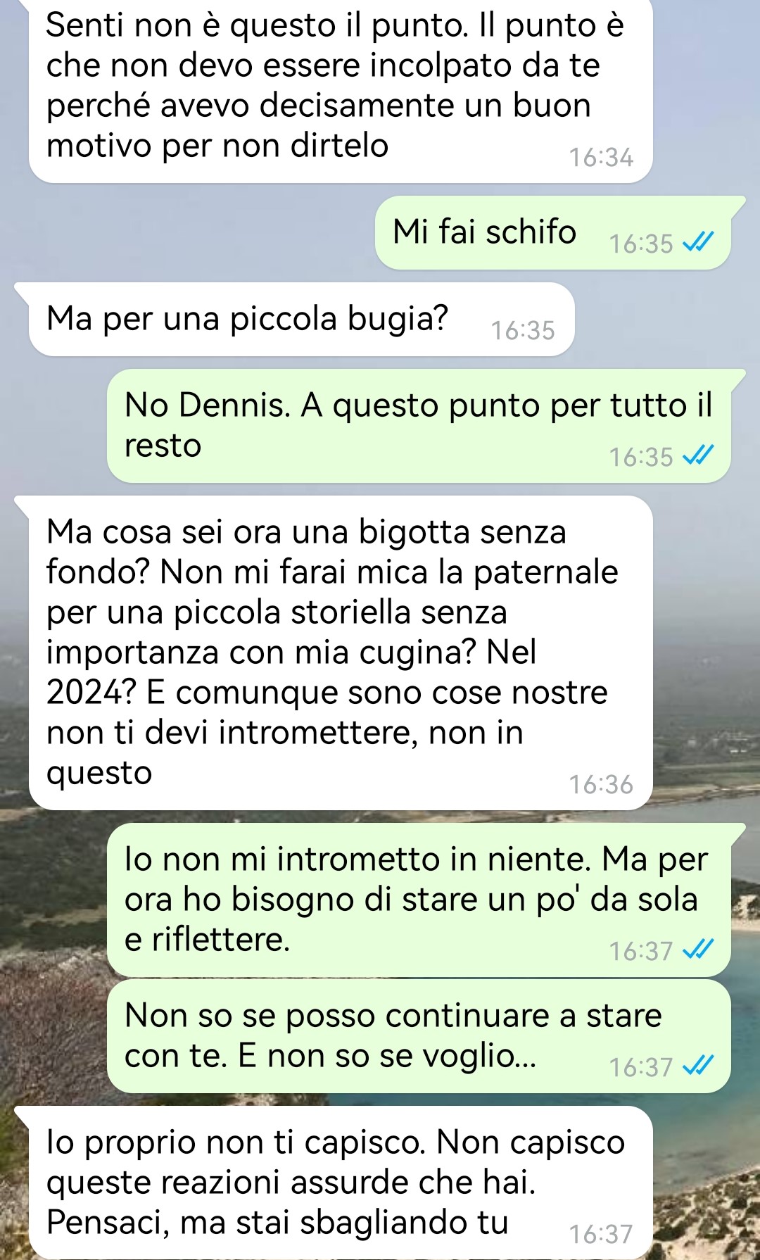 Ma alla luce di recenti eventi, la nostra amica ha iniziato a riflettere su un’amara verità: non si finisce mai davvero di conoscere le persone, nemmeno quelle più vicine. È una consapevolezza nata dalla seconda parte della storia, quella più dolorosa, che coinvolge il suo fidanzato Dennis – o forse ex, come lei stessa lascia intendere.