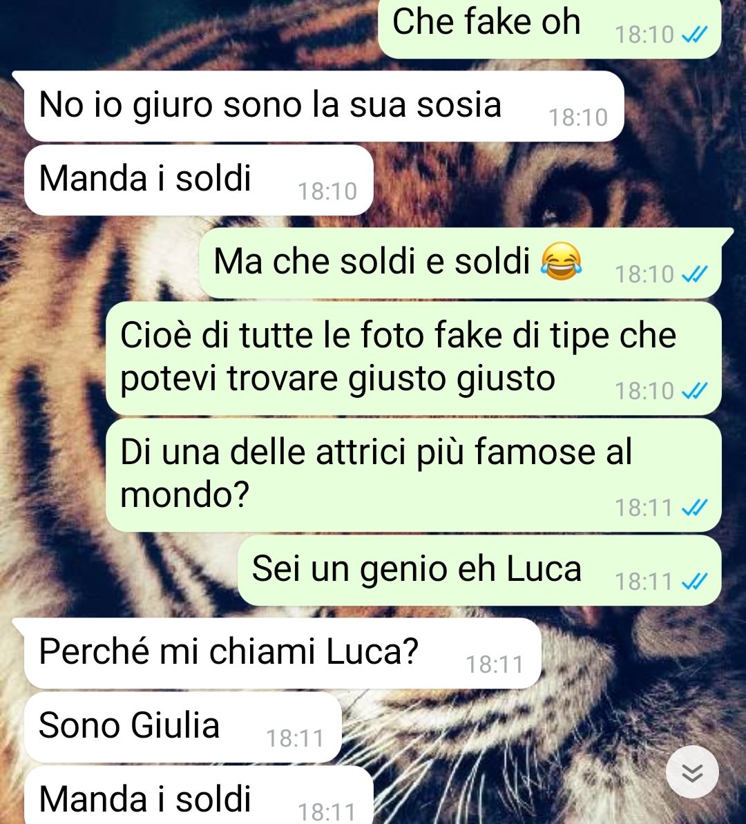 Il nostro fan sottolinea che, fin dai primi scambi, aveva la chiara impressione che ci fosse qualcosa che non quadrava. Nonostante questo, ha continuato a interagire, anche spinto dalla curiosità di capire dove stesse andando la situazione. Con il proseguire dei messaggi, l’atteggiamento di Giulia è diventato sempre più particolare, contribuendo a rendere l’intera esperienza surreale.