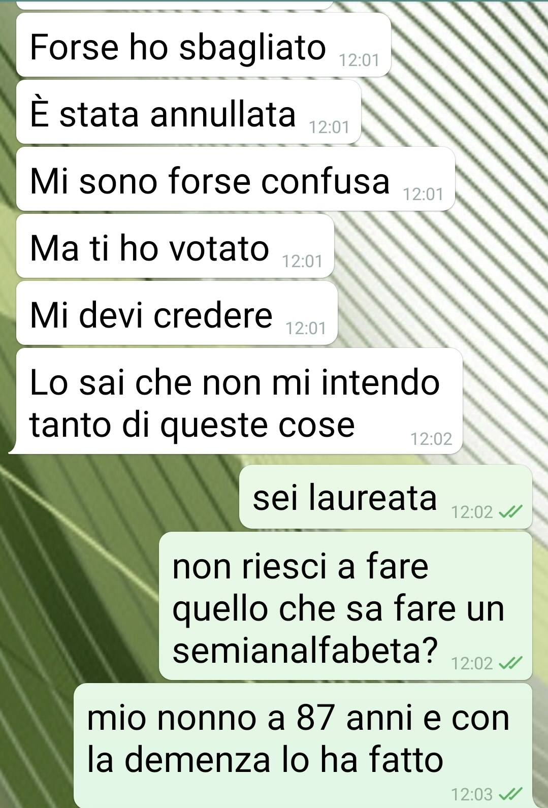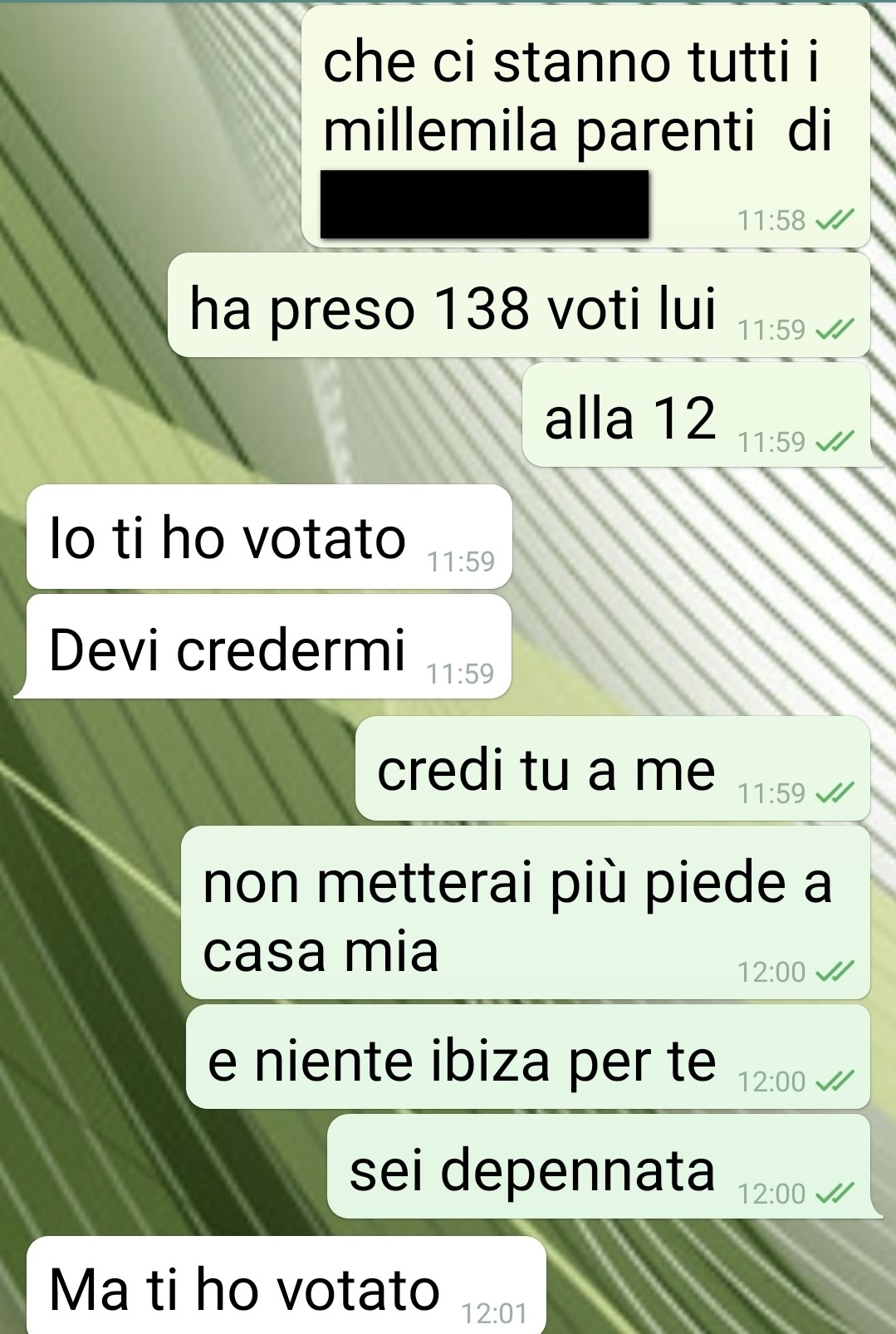 Tuttavia, come racconta con amarezza, questa campagna elettorale ha finito per metterla di fronte a una realtà che non si aspettava. Alcune dinamiche emerse durante il percorso, e in particolare una conversazione specifica, l’hanno profondamente delusa. In quella chat, una delle due amiche-sorelle – una figura centrale della sua vita – ha detto qualcosa che ha cambiato per sempre il loro rapporto.