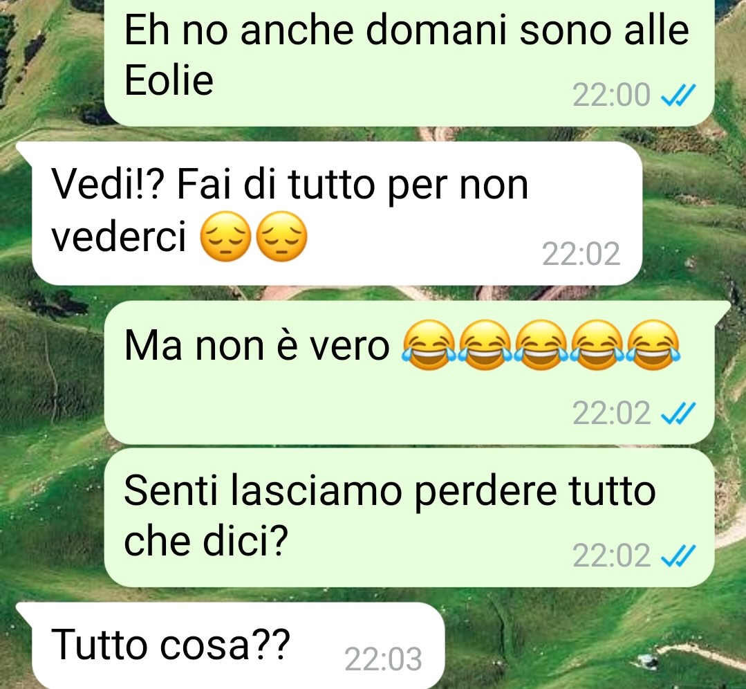 Lì ha incontrato una ragazza che gli è sembrata interessante: bella, particolare, forse un po’ alticcia, ma comunque intrigante. Si sono scambiati i numeri di telefono, e Fabio ha pensato che sarebbe rimasto tutto lì: una conoscenza passeggera, un ricordo divertente. La mattina seguente però doveva partire presto: volo, traghetto, escursione a Stromboli, ore di cammino, e naturalmente tante foto.