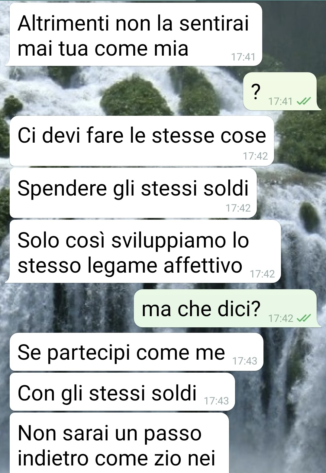 Pur non trattandosi di qualcosa di particolarmente grave, il nostro amico ha espresso il timore di sentirsi il “pollo” della situazione. Ha quindi deciso di condividere la chat e la sua storia per cercare un parere esterno, chiedendo se anche altri al posto suo avrebbero avuto la stessa sensazione.