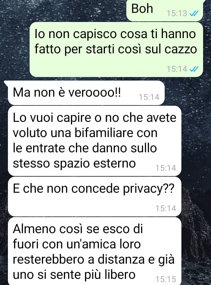 La chat che ha deciso di inviare a Commenti Memorabili rivela cosa abbia davvero proposto la sua compagna, e mostra anche quanto sia difficile per lui riuscire a dissuaderla senza rompere completamente l’equilibrio. Perché, quando si vive così a stretto contatto con i propri cari, ogni scelta diventa delicata. E a volte basta una sola idea, fuori posto, per far vacillare anni di serenità.